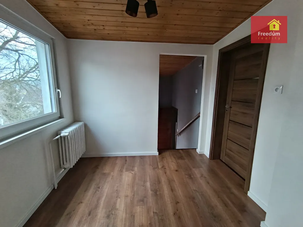 V patře se nachází tři pokoje a další menší místnost, která může sloužit například jako pracovna nebo čtecí kout.