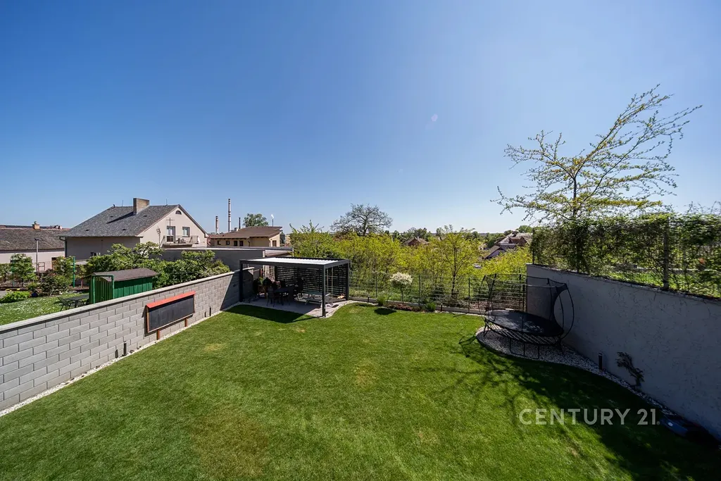 K vile náleží udržovaná zahrada s venkovním posezením, která nabízí příjemné soukromí i prostor pro společenské aktivity. Parkování je zajištěno na třech vyhrazených místech přímo u domu. Tato nemovitost je ideální volbou pro rodinu, která hledá výjimečné bydlení s vysokým standardem a preferuje klidné, ale dobře dostupné prostředí.
