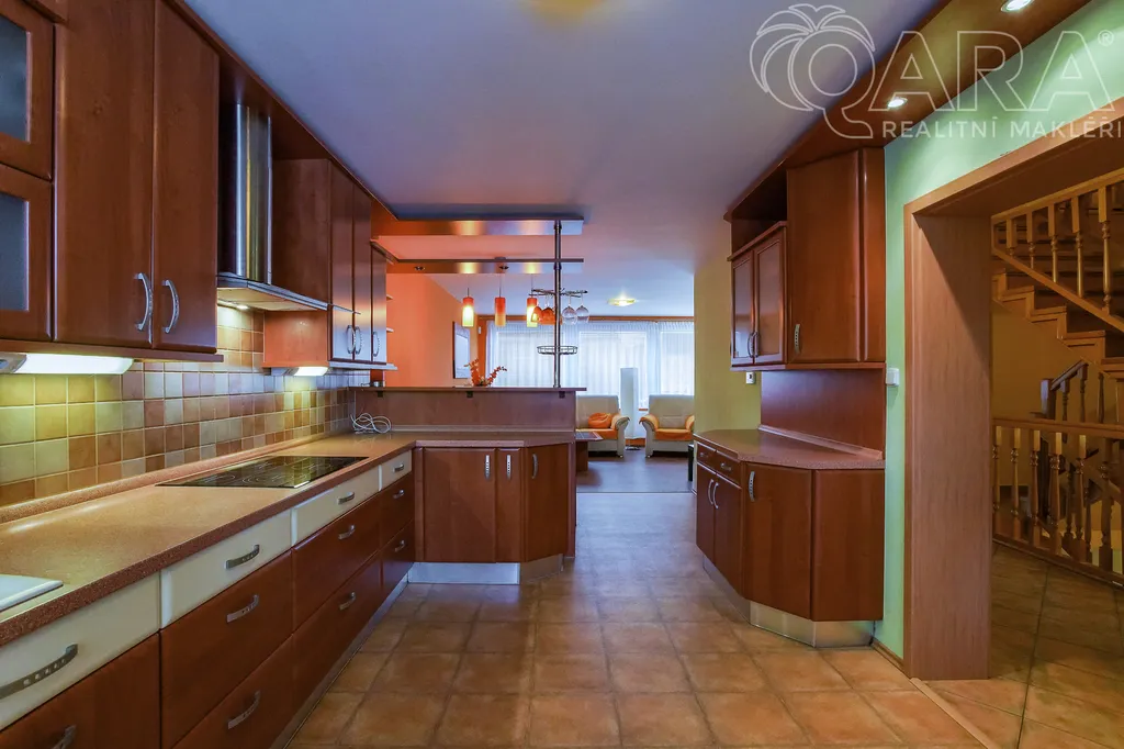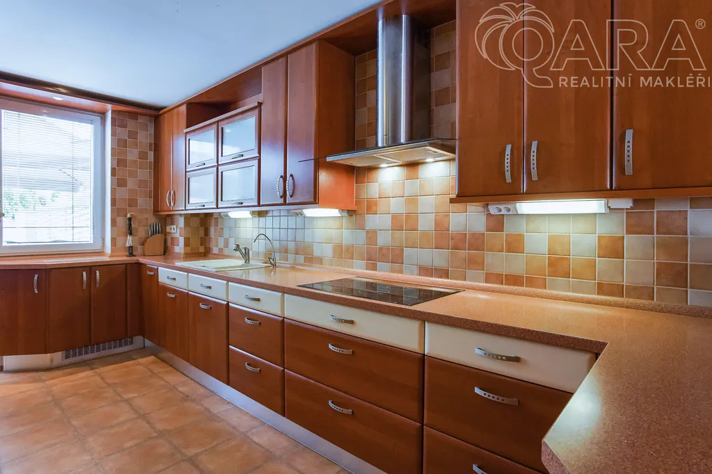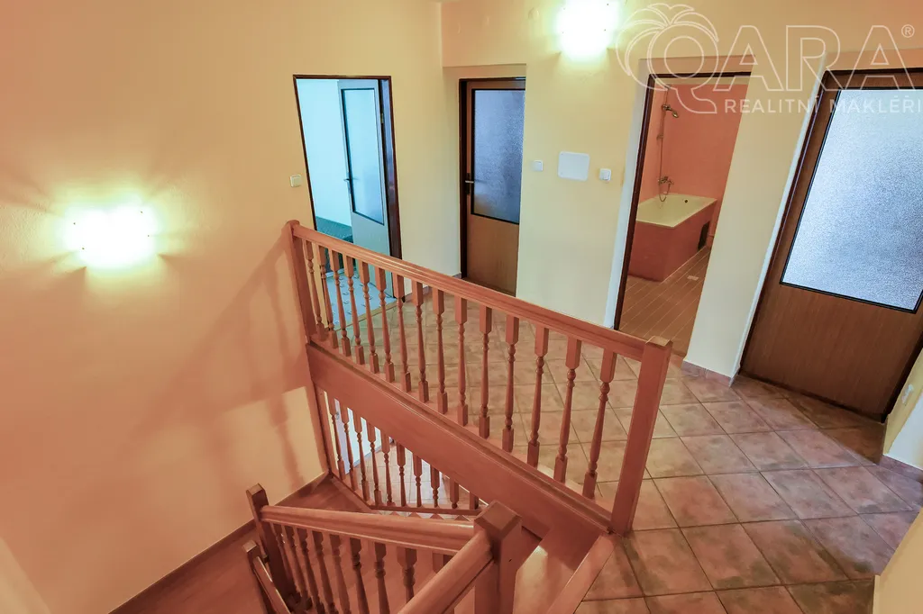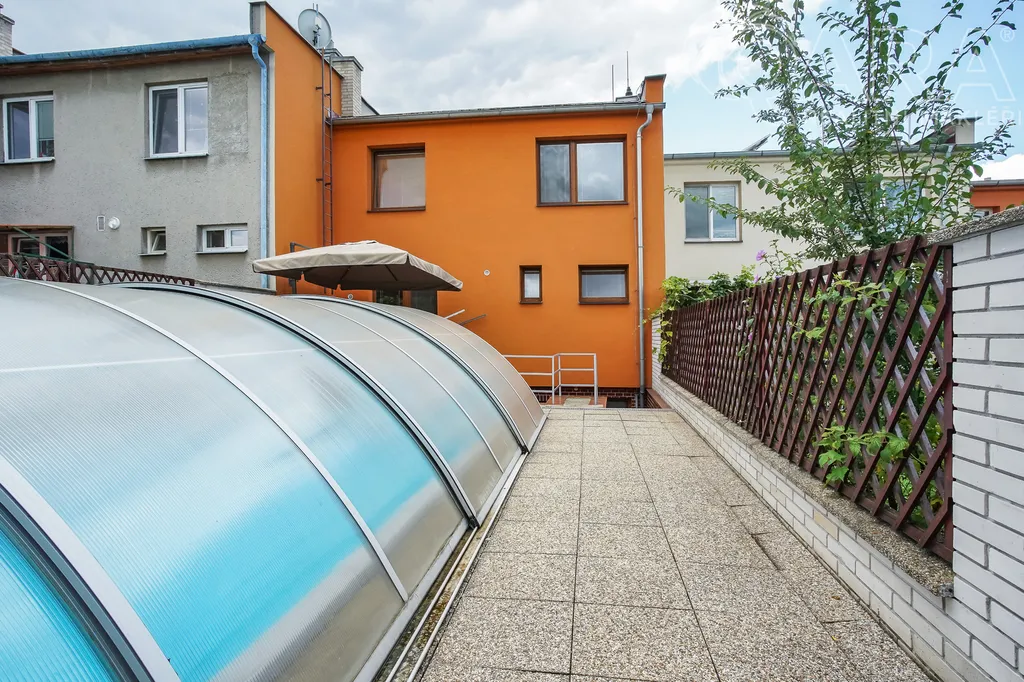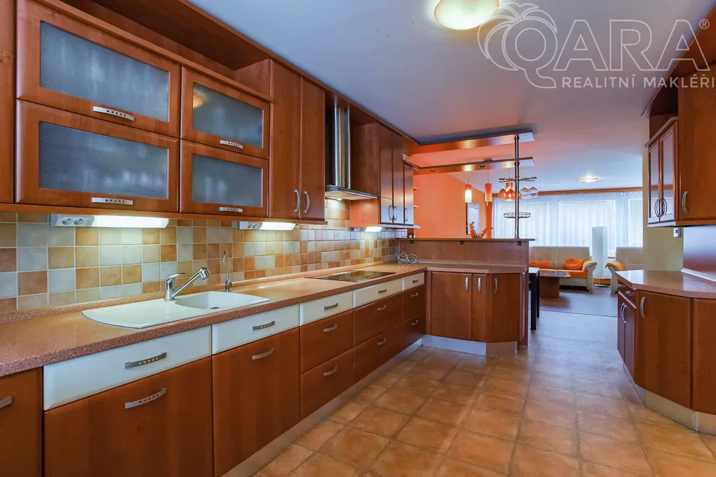 Nabízíme k pronájmu rodinný dům 4+kk s jídelnou, šatnou, terasou, garáží a bazénem ve Vyškově. V přízemí rodinného domu se nachází vstupní hala s krbem, dále technické místnosti (kotelna s kondenzačním kotlem, prádelna se sprchovým koutem a pračkou). V prvním patře je prostorný obývací pokoj propojený s jídelnou a kuchyní, šatna, koupelna (sprchový kout, umyvadlo, WC). Přímý vstup na terasu s posezením a bazénem, ideální pro odpočinek a letní grilování. Kuchyně je vybavena sklokeramickou varnou deskou, myčkou na nádobí, lednicí. Ve druhém patře jsou k dispozici tři samostatné pokoje, z toho dva propojené balkonem, dále koupelna s vanou, umyvadlem a WC. Dům se nachází v klidné ulici, s možností parkování přímo před domem, nedaleko centra Vyškova. Měsíční nájemné je 33.000,- Kč + 8.000,- Kč zálohy na energie. Součástí záloh je připojení k internetu včetně sledování TV přes internet. Majitel požaduje kauci ve výši jednoho měsíčního nájmu včetně energií. Provize RK je 33.000,- Kč.