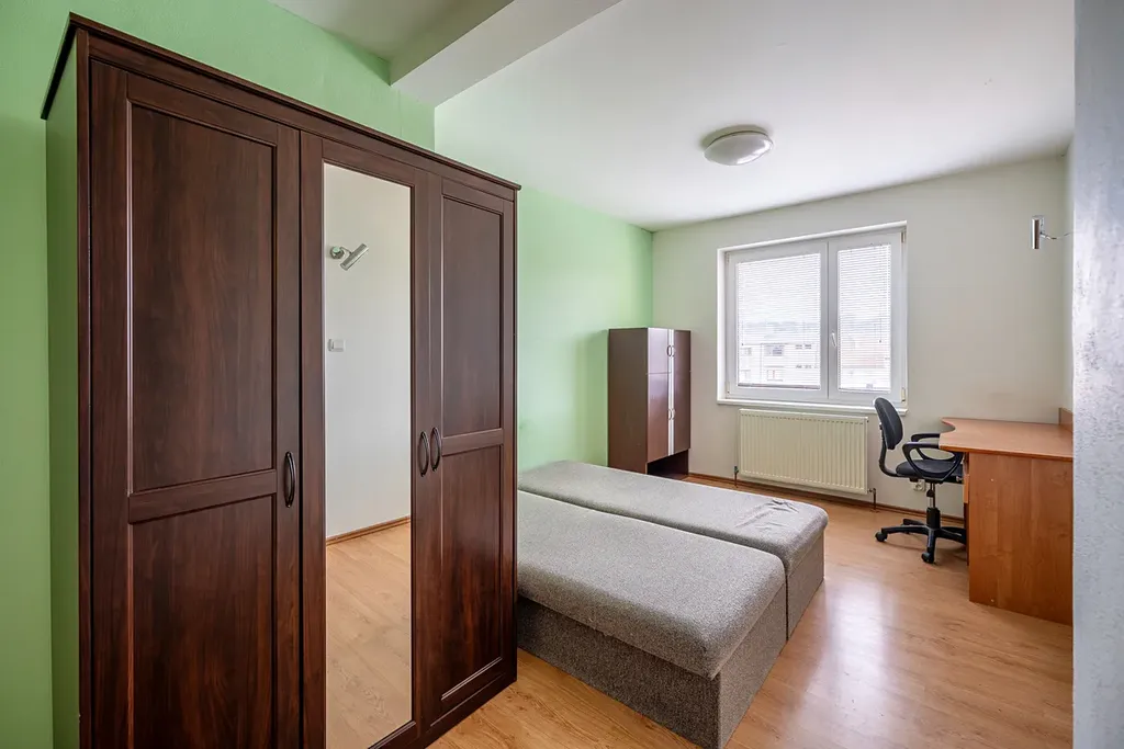 Bezproblémové parkování. Výborná dostupnost do centra. Byt je vhodný pro max. 3-4 pracující osoby bez zvířat.