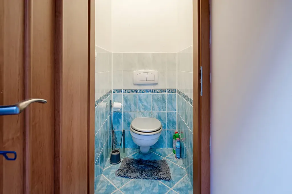 Koupelna je vybavena prostornou rohovou vanou. Samostatné WC.