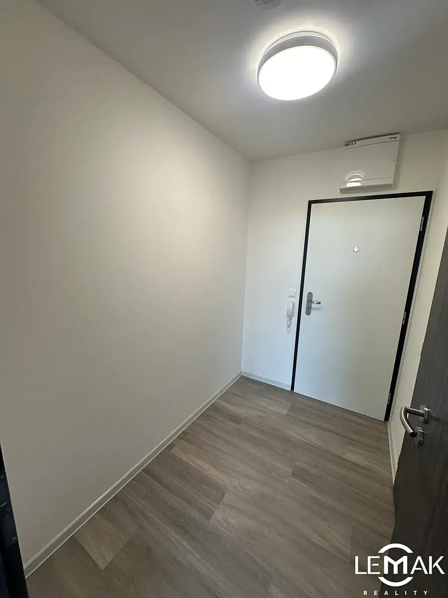 Byt se nachází ve 2. nadzemním podlaží a nabízí vstupní chodbu, koupelnu se sprchovým koutem, WC a dostatek prostoru pro pračku se sušičkou. Hlavní obytná místnost poskytuje dostatek místa pro obývací i spací zónu a je vybavena moderní kuchyňskou linkou na míru se skříňkami až ke stropu.
