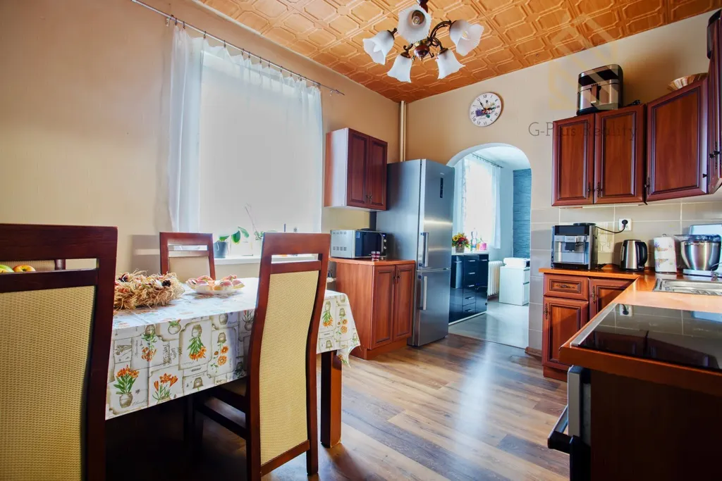 Nabízíme k prodeji patrový rodinný dům 4+1 v Ústí nad Labem v klidné a vyhledávané lokalitě v ulici Hostovická o celkové rozloze 725 m/2, zastavěná plocha domu činí 195 m/2,garáž má 28 m/2. Dům je ve velmi dobrém a udržovaném stavu, ihned k nastěhování, vhodný k drobným úpravám podle představ nového majitele. Dům je celý podsklepený, nezateplený, okna jsou plastová ,podlahy z dlažby, plovoucí podlahy, střecha je původní z pálených tašek, nové rozvody v plastu, majitel využívá vodu z vrtané studny, která je na úrovni kojenecké vody a nyní je k dispozici projektová dokumentace na připojení k vodovodnímu řádu na hranici pozemku. Teplo zajišťuje kotel na uhlí, dřevo a bojler 120 l Dakon 3.emisní třídy. V domě je plně vybavená kuchyň, obývák dále koupelna s WC a v patře se nacházejí 3 pokoje, samostatné WC dále půda, kde se nabízí možnost vybudování dalšího obytného prostoru. K relaxaci slouží zahrada, která je pečlivě udržovaná s možností pěstování zeleniny, posezení v novém altánku či grilováním. Na pozemku jsou ovocné stromy, rybíz, maliny, jahody. Také je k dispozici je také venkovní a krb s udírnou. Tento dům poskytuje příjemné bydlení s krásným výhledem do okolní krajiny a s výbornou dostupností do centra i do přírody i na dálnici D8 a v blízkosti je veškerá občanská vybavenost, lékař, škola, školka.. Velkou výhodou je lokalita a potenciál dalšího zhodnocení nemovitosti.. Parkování je možné v garáži nebo na ulici před domem, kde jsou k dispozici 3 parkovací místa. V případě Vašeho zájmu mne neváhejte kontaktovat a domluvit si prohlídku této zajímavé nemovitosti. S hypotečním úvěrem Vám rádi pomohou naši specialisté. Těšíme se na Vás.