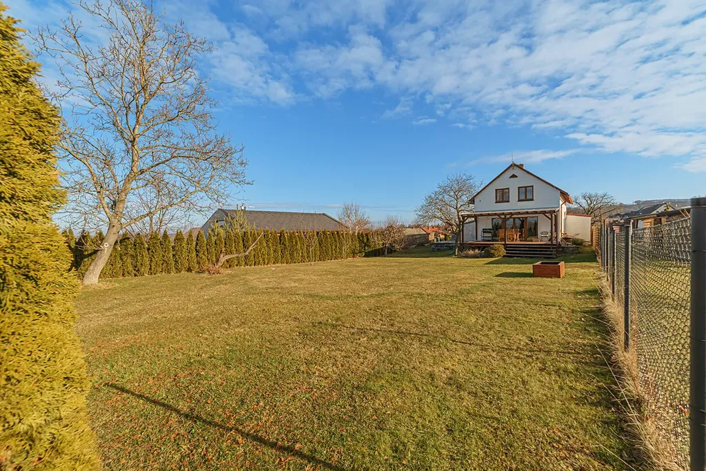 Tento samostatně stojící patrový dům s dispozicí 3+kk se zastavěnou plochou 80 m² a užitnou plochou 128 m² je situován na prostorném pozemku o výměře 782 m².