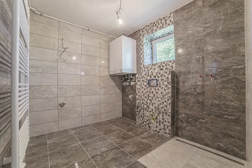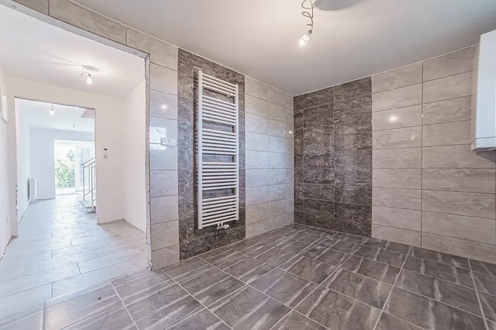 • V celém domě nové rozvody vody v plastu, nové rozvody plynu, plastová okna, nové rozvody elektřiny, štukové omítky, podhledy SDK, dlažba na podlaze.