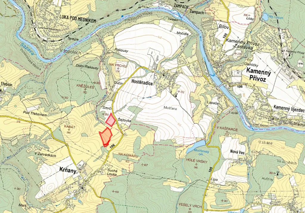 Nabízíme k prodeji soubor zemědělských pozemků ve výlučném vlastnictví, nacházejících se ve dvou katastrech - Hostěradice u Kamenného Přívozu (okres Praha-západ) a Krňany (okres Benešov)