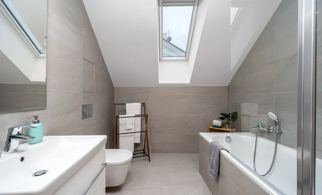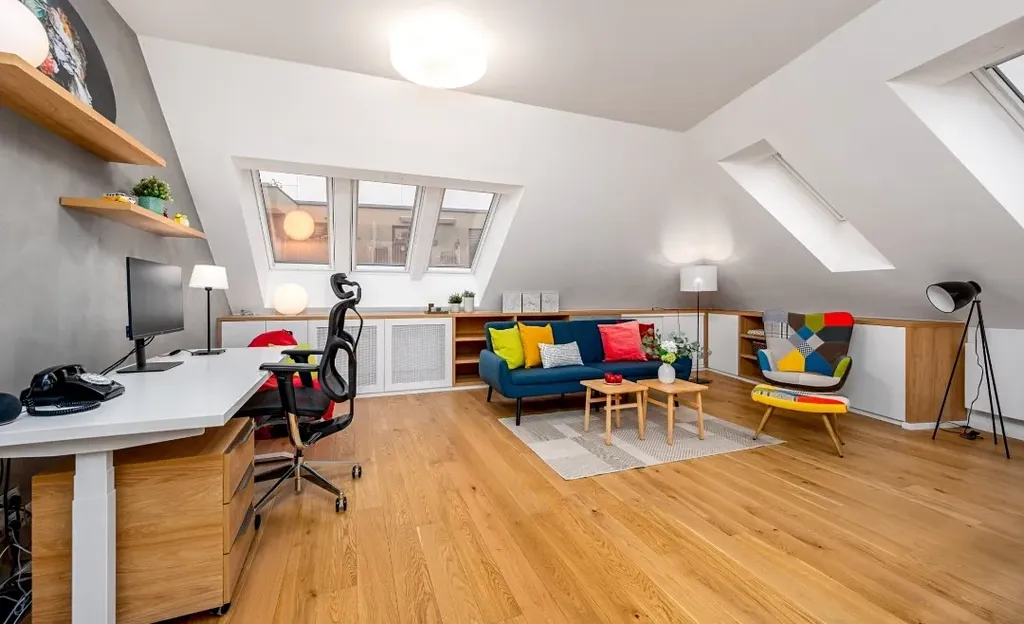 Interiér je proveden ve vysokém standardu s použitím kvalitních a nadčasových materiálů. Dřevěné podlahy v obytných místnostech a velkoformátová dlažba dodávají prostoru elegantní a reprezentativní charakter.