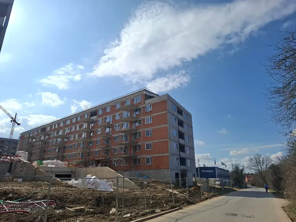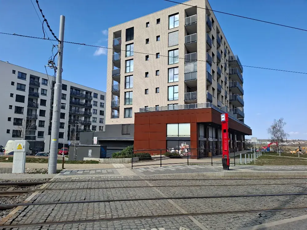 Rovněž poloha domu je výhodná, neboť dům není situován přímo podél trasy tramvaje, ale až jako třetí dům směrem od trasy tramvaje s výhledem směrem na druhou stranu od tramvaje a tudíž se jedná o klidnější lokaci na rozdíl od některých jiných domů v projektu.