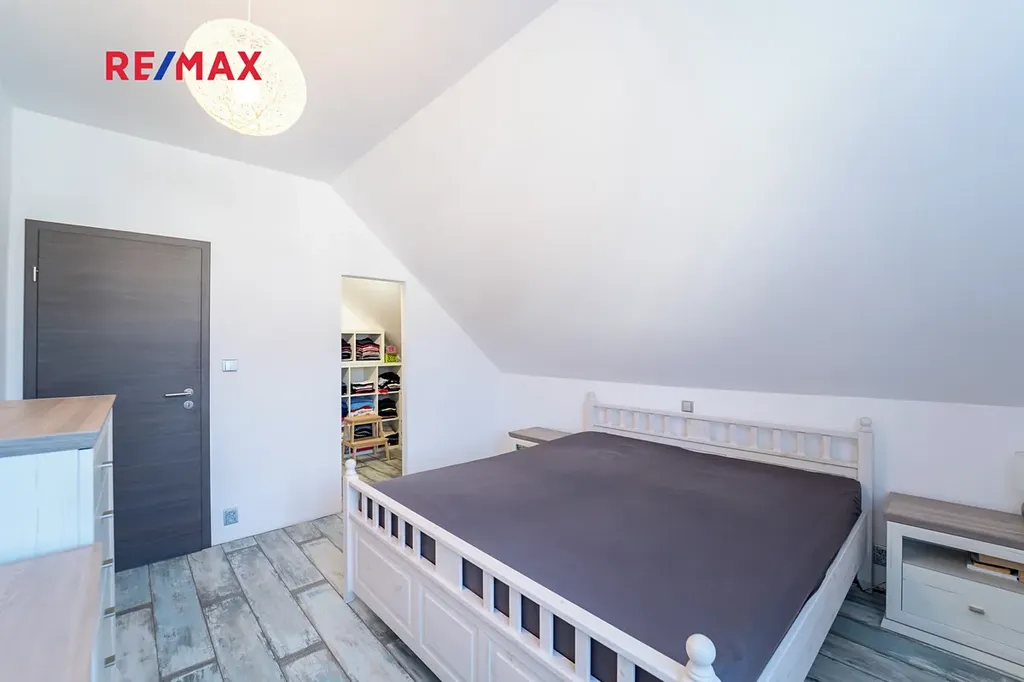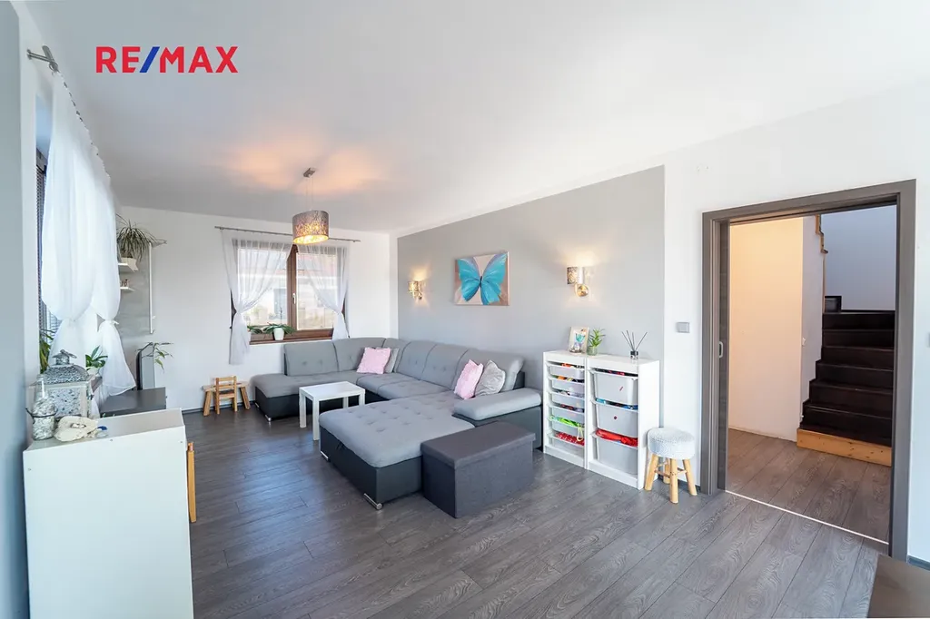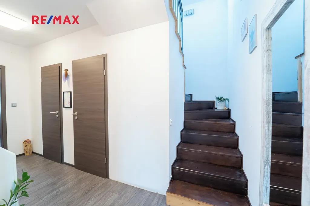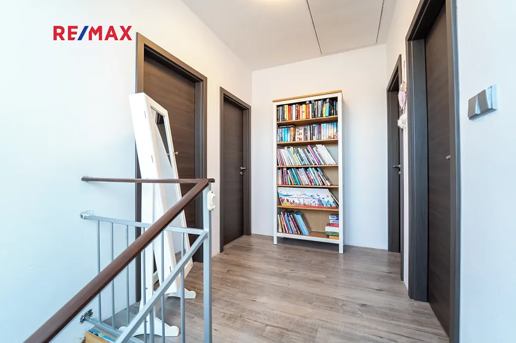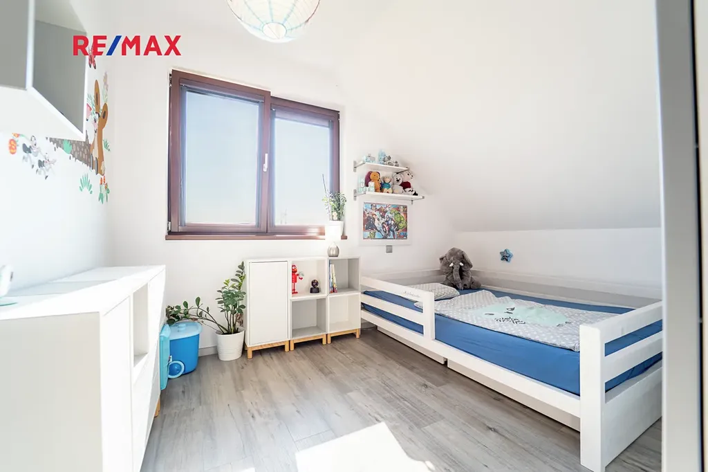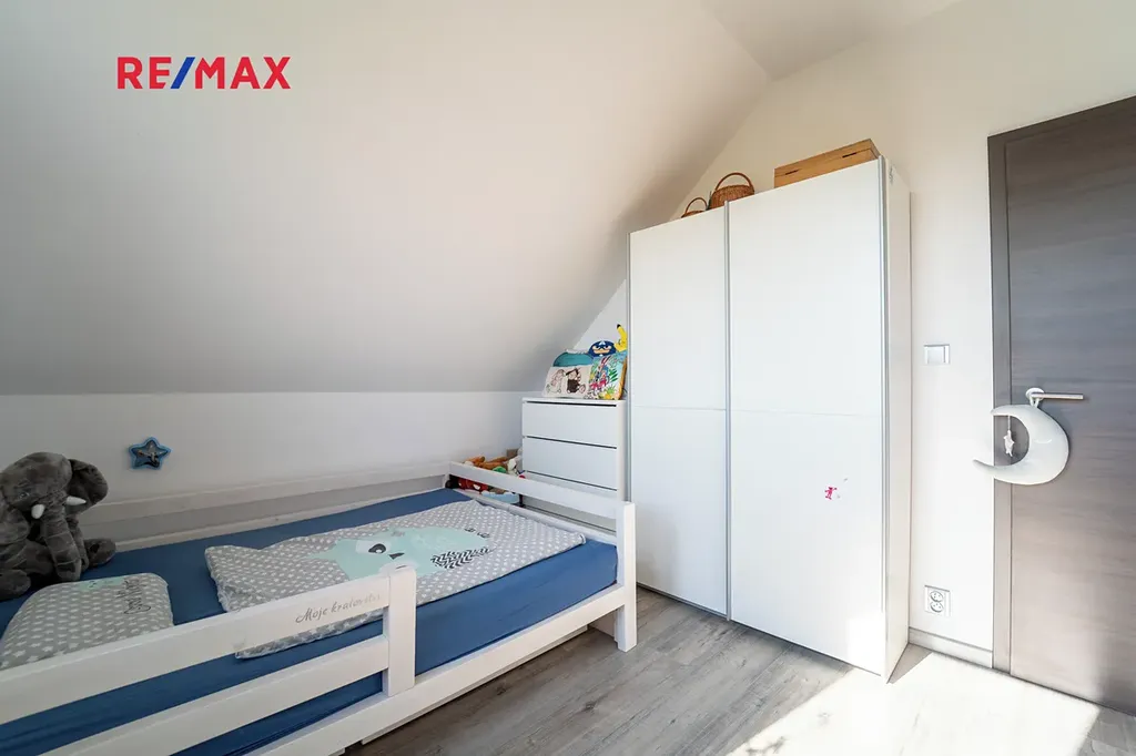 Dovolujeme si Vám nabídnout k prodeji novostavbu dvoupodlažního rodinného domu o dispozici 4+kk s užitnou plochou 167 m² a rovinatým pozemkem o velikosti 910 m², nacházející se v klidné části obce Sokoleč, ulice Luční. Dům byl kolaudován v roce 2024 a nabízí moderní, komfortní bydlení ideální pro rodinu. Dominantou přízemí je prostorný a světlý obývací pokoj o velikosti 32,8 m², který je propojen s jídelnou a kuchyňským koutem (10,95 m²). Kuchyň je vybavena moderní kuchyňskou linkou a praktickou spižírnou. Z obývací části i kuchyně je přímý vstup na terasu a do zahrady, což vytváří příjemné propojení interiéru s venkovním prostorem. V přízemí se dále nachází samostatné WC, komora (3,61 m²) a technická místnost (6,44 m²). Do patra vede dřevěné schodiště, kde jsou situovány tři samostatné pokoje o velikostech 10,98 m², 11,16 m² a 16,20 m². Největší z nich disponuje vlastní šatnou (5.33 m²). Součástí patra je také prostorná koupelna (12,8 m²) vybavená vanou, sprchovým koutem a toaletou. Dům je napojen na obecní vodovod a kanalizaci. Vytápění zajišťuje elektrokotel s podlahovým vytápěním, ohřev vody bojler. Okna jsou dřevěná s trojskly. Stavba je z Ytongu (30 cm) se zateplením 10 cm, střecha je pokryta taškami KM Beta a zateplena 28 cm minerální vaty. K dispozici je také projekt na vrtanou studnu. Součástí domu je garáž 21,46 m² pro jeden automobil (bez vytápění). Před domem je zpevněná plocha ze zámkové dlažby vhodná pro další parkování. Zahrada je rovinatá, oplocená a pečlivě udržovaná. Pro rodiny s dětmi je zde připraveno dřevěné dětské hřiště se skluzavkou, houpačkou a pískovištěm, které poskytuje ideální prostor pro trávení volného času. Obec Sokoleč nabízí dobrou občanskou vybavenost – mateřskou školu, základní školu (1. stupeň), restauraci, menší obchod i sportoviště. Výhodou je také výborná dopravní dostupnost – autobusové spojení do Poděbrad a Kolína a rychlé napojení na dálnici D11, díky čemuž je Praha dobře dostupná. Tato nemovitost představuje ideální kombinaci moderního bydlení, klidného prostředí a dobré dostupnosti městských služeb. Pro více informací nebo sjednání prohlídky mě neváhejte kontaktovat. Prodávající si vyhrazuje právo vybrat kupujícího na základě jím zvolených kritérií.