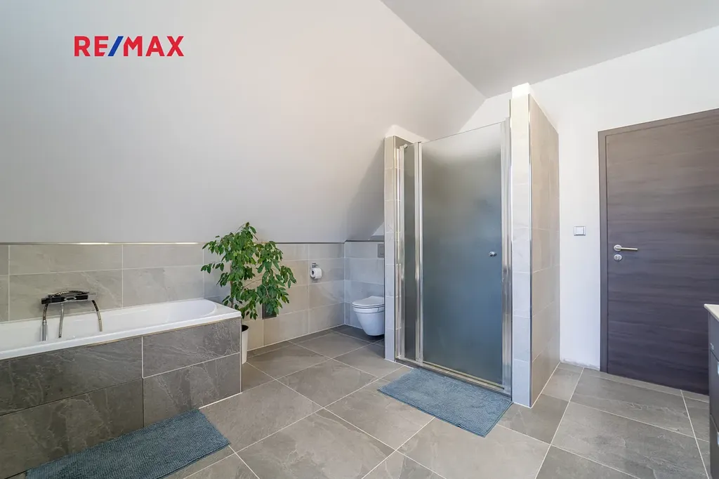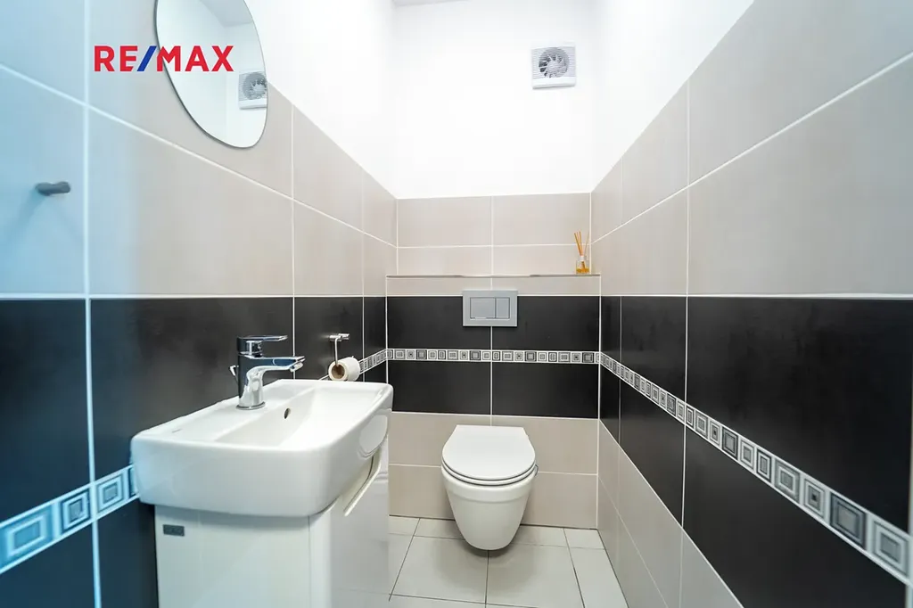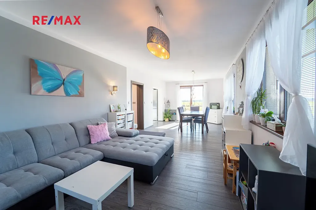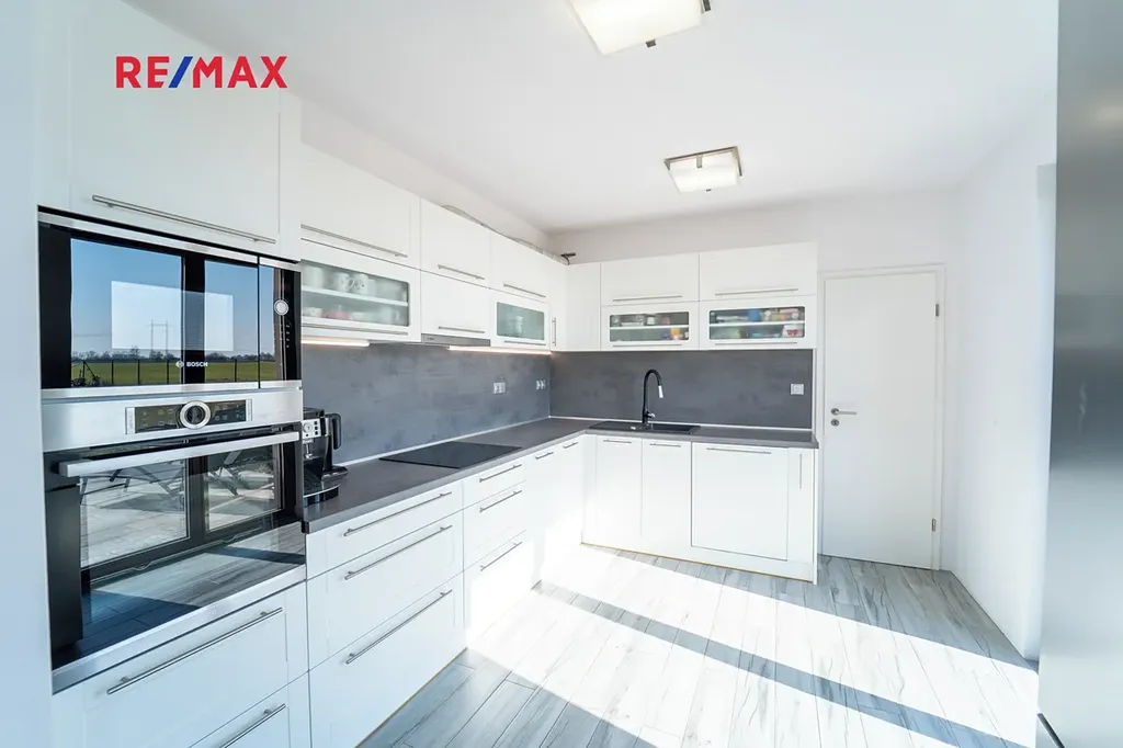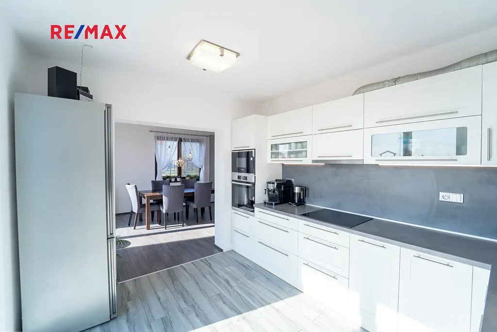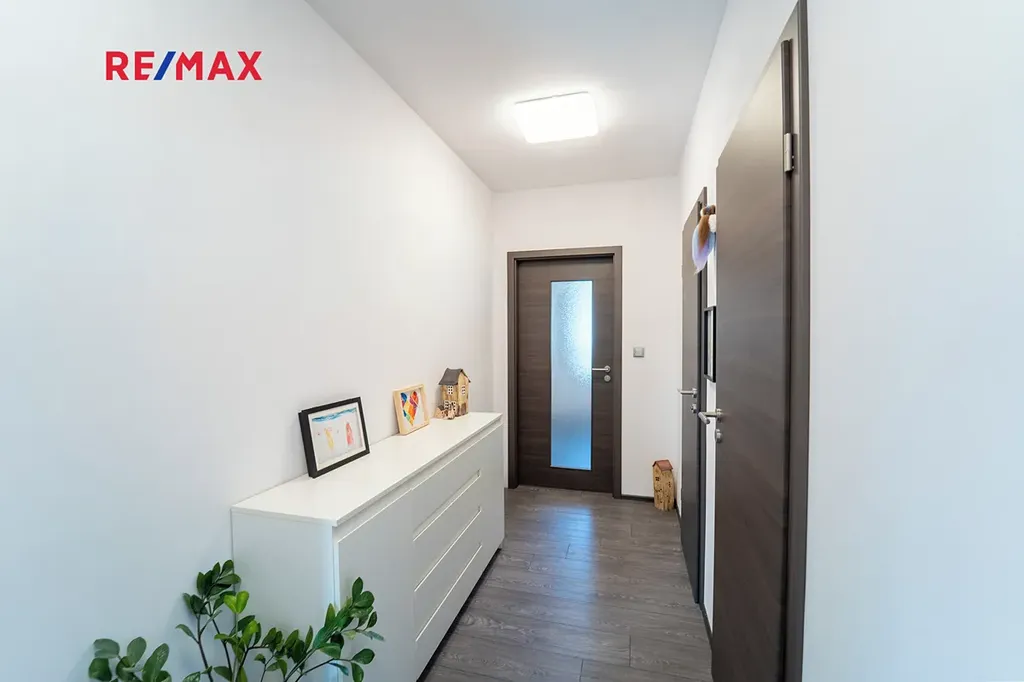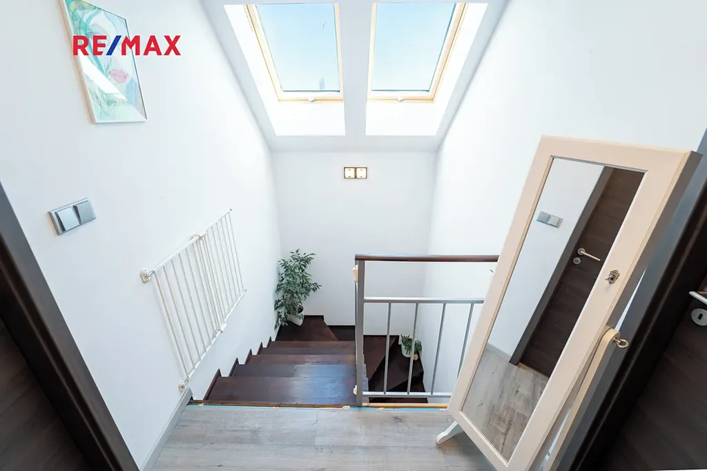 Dovolujeme si Vám nabídnout k prodeji novostavbu dvoupodlažního rodinného domu o dispozici 4+kk s užitnou plochou 167 m² a rovinatým pozemkem o velikosti 910 m², nacházející se v klidné části obce Sokoleč, ulice Luční. Dům byl kolaudován v roce 2024 a nabízí moderní, komfortní bydlení ideální pro rodinu. Dominantou přízemí je prostorný a světlý obývací pokoj o velikosti 32,8 m², který je propojen s jídelnou a kuchyňským koutem (10,95 m²). Kuchyň je vybavena moderní kuchyňskou linkou a praktickou spižírnou. Z obývací části i kuchyně je přímý vstup na terasu a do zahrady, což vytváří příjemné propojení interiéru s venkovním prostorem. V přízemí se dále nachází samostatné WC, komora (3,61 m²) a technická místnost (6,44 m²). Do patra vede dřevěné schodiště, kde jsou situovány tři samostatné pokoje o velikostech 10,98 m², 11,16 m² a 16,20 m². Největší z nich disponuje vlastní šatnou (5.33 m²). Součástí patra je také prostorná koupelna (12,8 m²) vybavená vanou, sprchovým koutem a toaletou. Dům je napojen na obecní vodovod a kanalizaci. Vytápění zajišťuje elektrokotel s podlahovým vytápěním, ohřev vody bojler. Okna jsou dřevěná s trojskly. Stavba je z Ytongu (30 cm) se zateplením 10 cm, střecha je pokryta taškami KM Beta a zateplena 28 cm minerální vaty. K dispozici je také projekt na vrtanou studnu. Součástí domu je garáž 21,46 m² pro jeden automobil (bez vytápění). Před domem je zpevněná plocha ze zámkové dlažby vhodná pro další parkování. Zahrada je rovinatá, oplocená a pečlivě udržovaná. Pro rodiny s dětmi je zde připraveno dřevěné dětské hřiště se skluzavkou, houpačkou a pískovištěm, které poskytuje ideální prostor pro trávení volného času. Obec Sokoleč nabízí dobrou občanskou vybavenost – mateřskou školu, základní školu (1. stupeň), restauraci, menší obchod i sportoviště. Výhodou je také výborná dopravní dostupnost – autobusové spojení do Poděbrad a Kolína a rychlé napojení na dálnici D11, díky čemuž je Praha dobře dostupná. Tato nemovitost představuje ideální kombinaci moderního bydlení, klidného prostředí a dobré dostupnosti městských služeb. Pro více informací nebo sjednání prohlídky mě neváhejte kontaktovat. Prodávající si vyhrazuje právo vybrat kupujícího na základě jím zvolených kritérií.