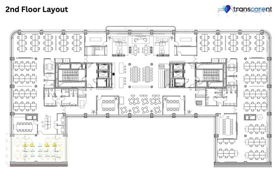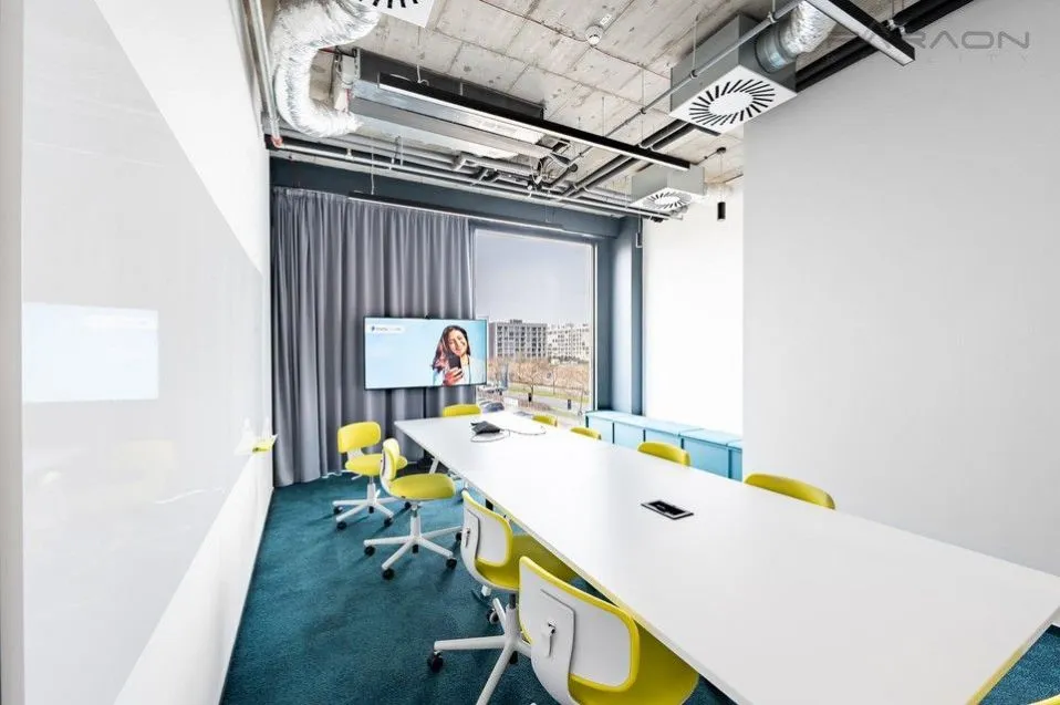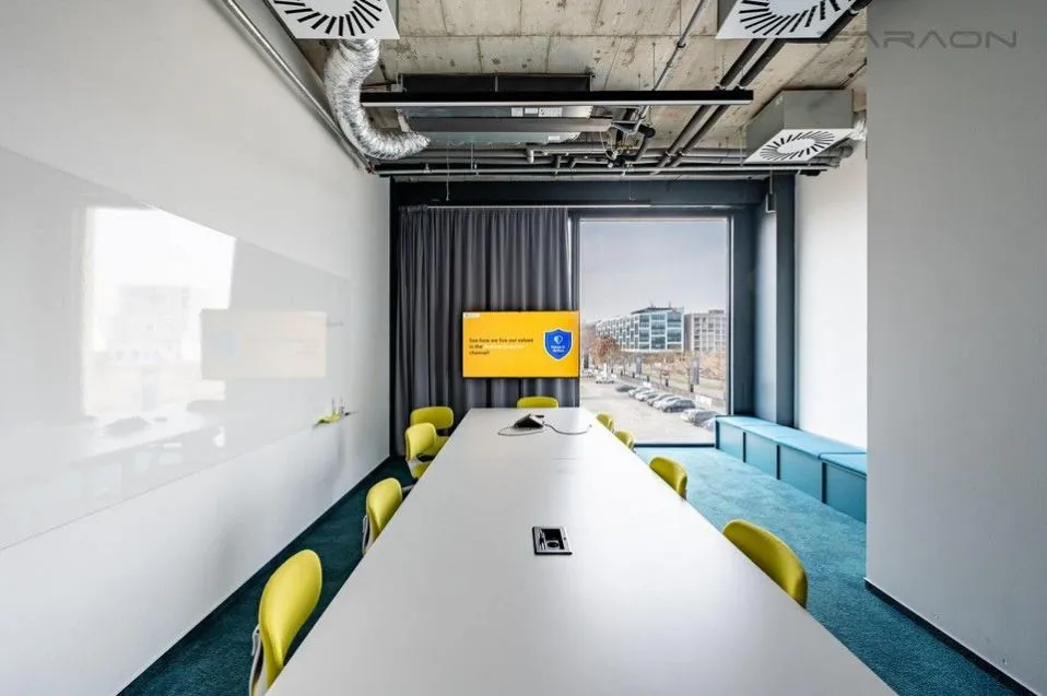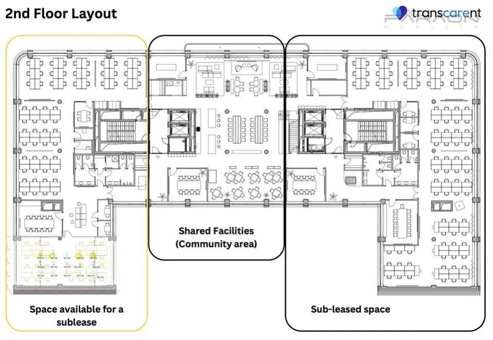 Velkým benefitem tohoto podnájmu je přístup do sdíleného reprezentativního Community prostoru. Tento multifunkční areál slouží nejen jako jídelní kout, ale především jako flexibilní zóna pro firemní akce, prezentace či All-hands meetingy. Je vybaven pódiem, projekčním plátnem, profesionálním ozvučením a umožňuje uspořádání sezení v divadelním stylu.