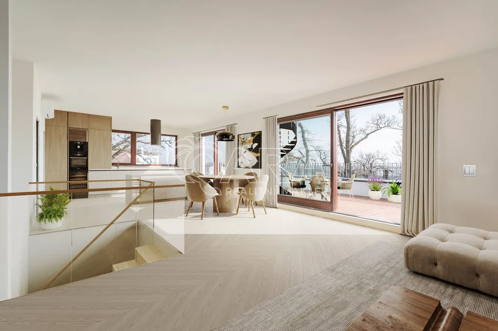 Představte si místo, kde každý den začíná a končí s dechberoucím výhledem, kde soukromí a půvab tvoří dokonalou symfonii s přírodou. Vítám vás v exkluzivním mezonetovém bytě o výměře 156,5m2, kde se architektonická bravura setkává s krásou přírodní památky parku Vidoule. Tento skvost je výsledkem mistrovské práce mar.s. architects, kteří stojí za projekty, které oslovují svět. S dřevem, kamenem a atypickými fasádami tvoří tento byt ve skutečnosti malý rodinný dům, umělecké dílo, které je zároveň vaším domovem.