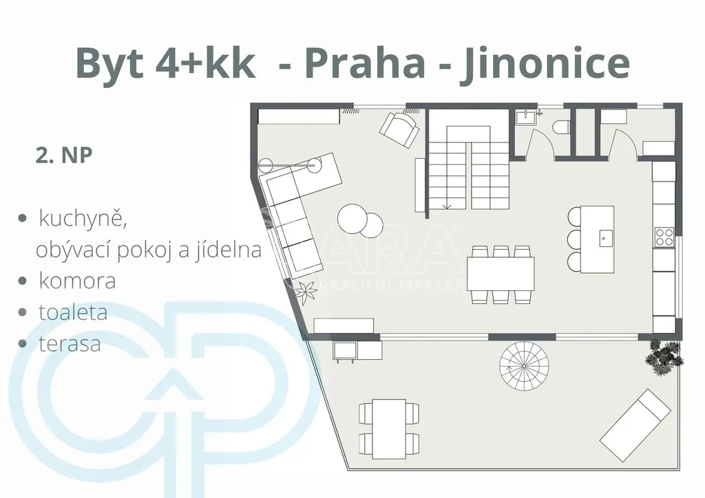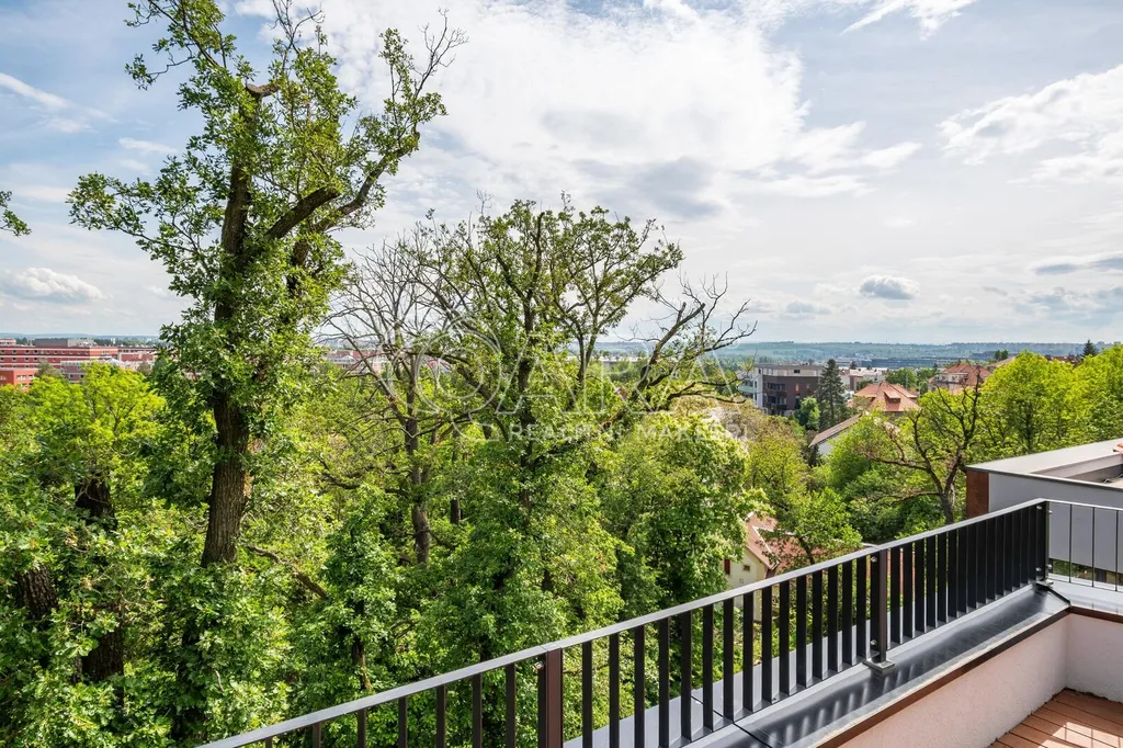 Avšak ta pravá kouzla se začínají dít o patro výš. Obývací pokoj, který je synonymem pro velkorysost a eleganci, se otevírá na terasu o rozloze 30 m2 s výhledem, který bere dech. Zde, nad korunami stromů, máte panoramatický výhled na Prahu a její okolí, což je zážitek, který se nikdy neomrzí. A pak je tu střešní terasa o ploše 50m2, vaše soukromá oáza pro relaxaci, zábavu nebo jednoduše pro chvíle klidu s rodinou. Na straně jedné s Prahou jako na dlani a zelení přírodního parku na straně druhé.