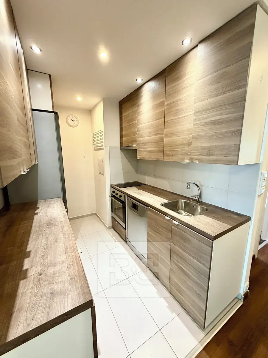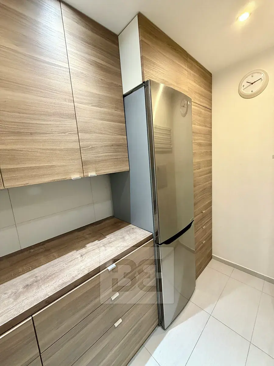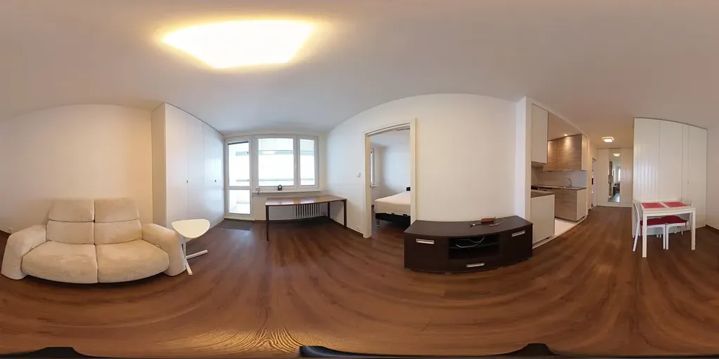 Byt o celkové ploše 45 m² prošel v posledních letech kompletní rekonstrukcí s důrazem na praktické řešení a dostatek úložných prostor. Dispozice bytu nabízí vstupní předsíň s vestavěnými skříněmi, koupelnu s vanou, samostatné WC s pračkou a světlý obývací pokoj s kuchyňským koutem. Kuchyň je vybavena myčkou na nádobí (60cm), pečicí a mikrovlnnou troubou a lednicí. Z obývací části je vstup do ložnice.