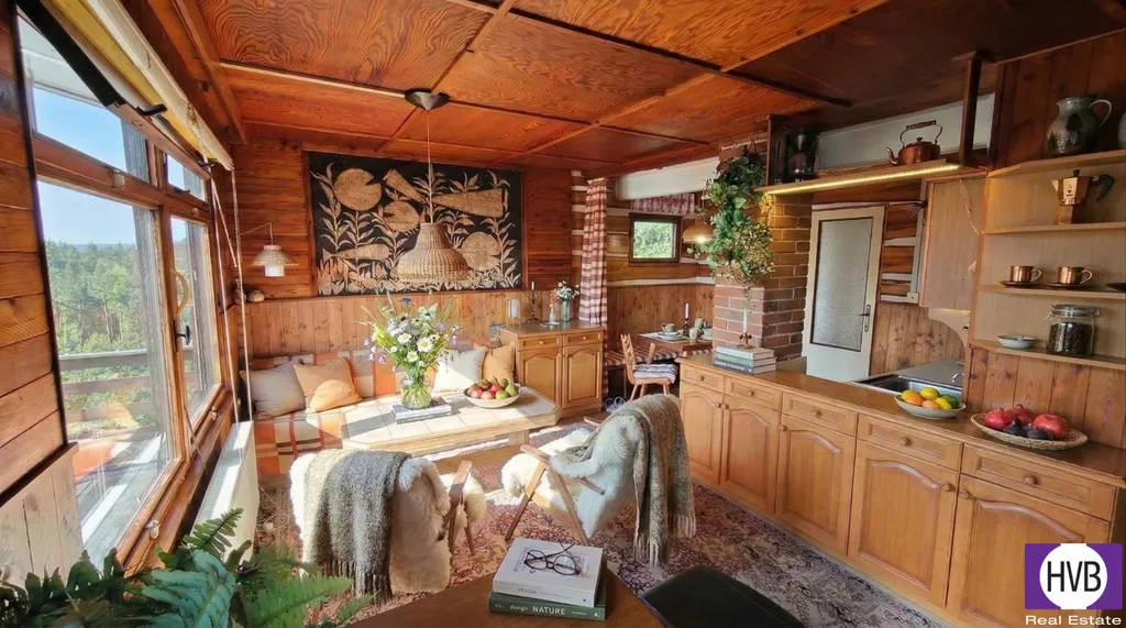 Prodej zařízené chaty 5+kk/B 70 m², pozemek 622 m², Křečovice - Živohošť, okr. Benešov ve slepé ulici uzavřené chatové oblasti Žlíbek. Rekreační, udržovaná stavba je v rodině vlastníka od její výstavby a nabízí velkorysou dispozici s dvěma nezávislými obytnými podlažími. V prvním jsou 2 pokoje, první s teplovzdušným, otevřeným krbem, vchodem přímo na terasu a jednou ložnicí. V druhém nadzemním podlaží se samostatným vchodem se nachází hlavní obývací prostor s kuchyňským koutem, jídelnou, vchodem na balkon, dalšími dvěma pokoji, koupelnou a toaletou, další toaleta je přístupná z venkovních prostor v přízemí.