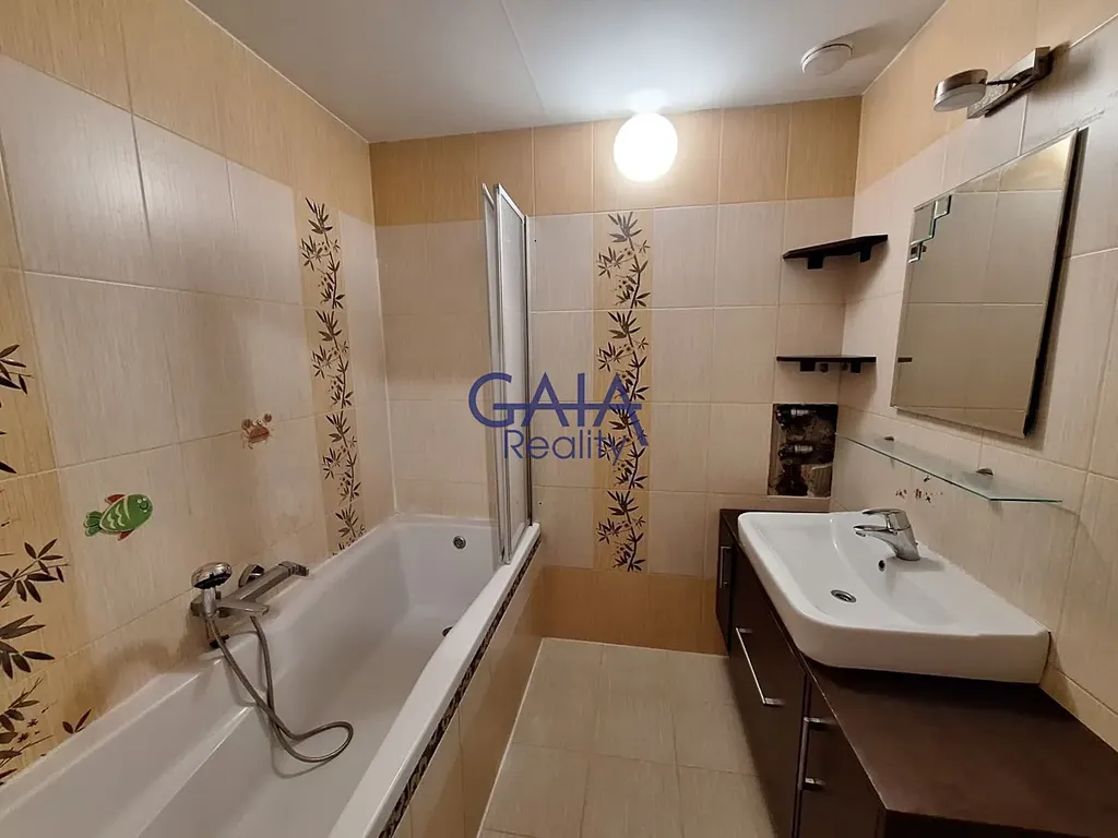 Dominantou bytu je velký a světlý obývací pokoj s přístupem na prostornou lodžii, orientovanou do klidného prostoru se zelení. Díky velkým oknům je místnost příjemně prosvětlená po celý den.