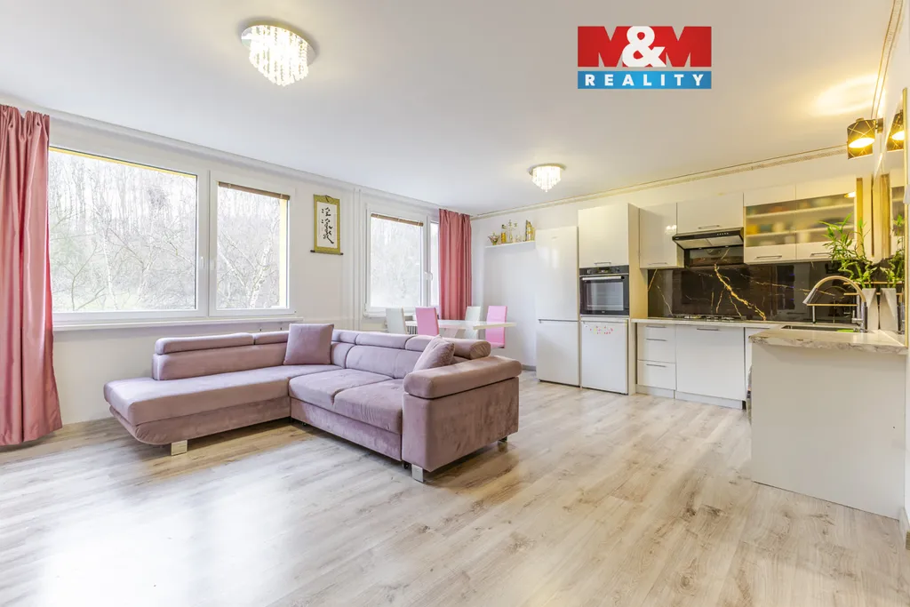 Nabízíme k prodeji velmi vkusně upravený a světlý byt 3+kk, situovaný v klidné a žádané lokalitě. Interiér prošel modernizací a na první pohled zaujme svou čistou linií a vzdušností. Dominantou je velkorysý obývací pokoj s kuchyňským koutem, který je vybaven moderní linkou v bílém lesku s vestavěnými spotřebiči a luxusní tmavou zástěnou s mramorovým dekorem. Obývací část zdobí designová TV stěna s fialovým podsvícením a vestavěným elektrickým krbem, který vnáší do domova jedinečnou atmosféru. V celém bytě je položena nová plovoucí podlaha a osazena jsou plastová okna. Koupelna disponuje sprchovým koutem, toaleta je řešena samostatně pro zajištění maximálního soukromí. Přesné a praktické uspořádání všech místností naleznete na přiloženém půdorysu. Lokalita nabízí výbornou dostupnost veškerých služeb i MHD. Financování zajistíme pomocí našeho finančního centra. Pokud Vás nabídka zaujala, neváhejte si domluvit prohlídku.