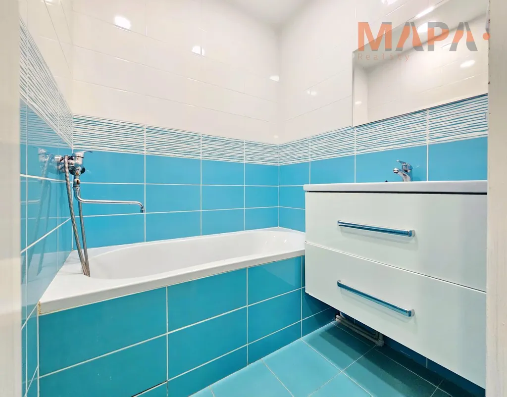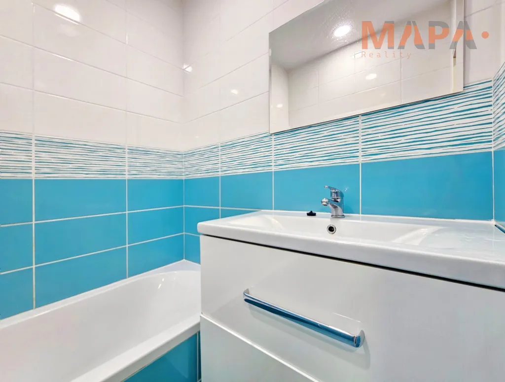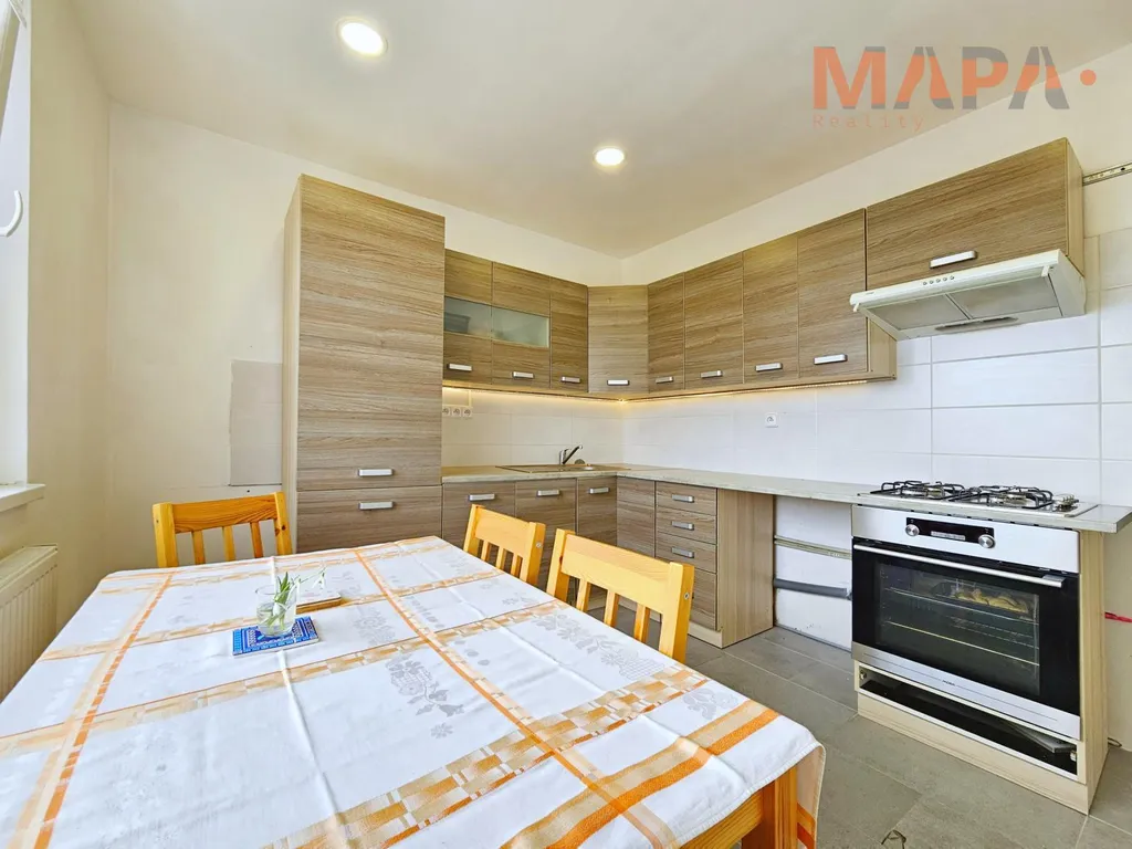 Součástí tohoto hezkého bytu po rekonstrukci, je koupelna s vanou, WC a kuchyňská linka.