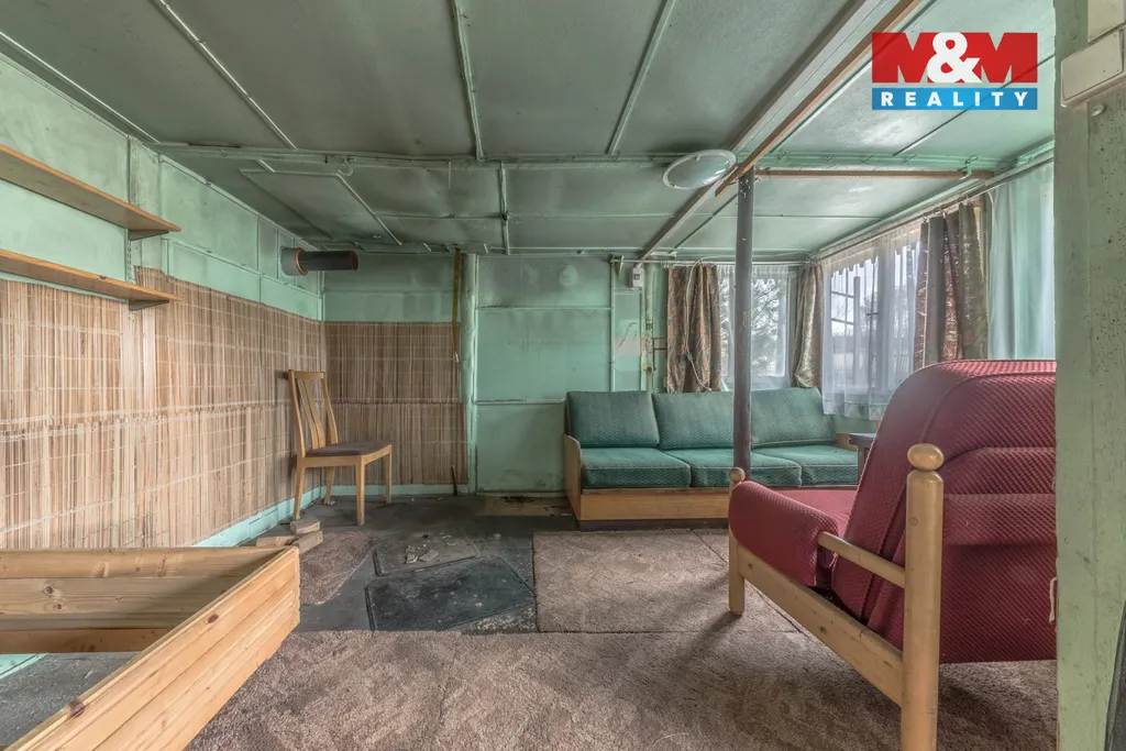 Na zahradě se nachází dřevěná chatka, vhodná k rekonstrukci dle vlastních představ. Dále se zde nachází starší skleník, udírna, ohniště, uzamykatelná bouda na uskladnění nářadí, suché WC.
