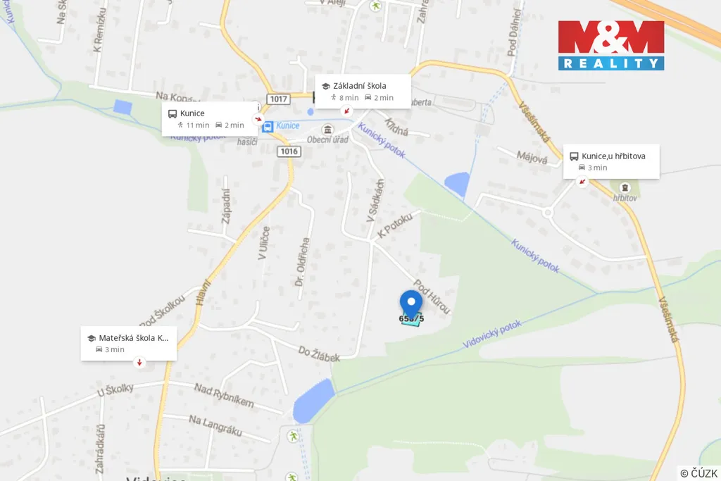 Nabízíme k prodeji stavební pozemek o výměře 924 m² v atraktivní klidné části obce Kunice u Říčan, v ulici Pod Hůrou. Pozemek se nachází na okraji zástavby přímo u lesa, jen pár minut chůze od centra obce a základní školy, a je součástí projektu čtyř stavebních parcel, pro které byla zpracována studie výstavby RD i návrh technické infrastruktury. Přístup bude zajištěn neveřejnou komunikací na spoluvlastněném pozemku, jejíž projekt se připravuje pro stavební povolení a řeší napojení na infrastrukturu v ulici Pod Hůrou (vodovod, kanalizace, elektřina). Vlastníci pozemků se dohodli na společném postupu při její realizaci i vybudování inženýrských sítí. Součástí řešení je také plánovaná výstavba mostku propojujícího ulici Pod Hůrou s komunikací U Zlatého potoka (investice cca 100 000 Kč).Plánovací smlouva s obcí Kunice o realizaci infrastruktury a převodu části komunikace do správy obce je v přípravě. Výhodou je vypracovaná studie výstavby rodinného domu. Pro více informací nás kontaktujte