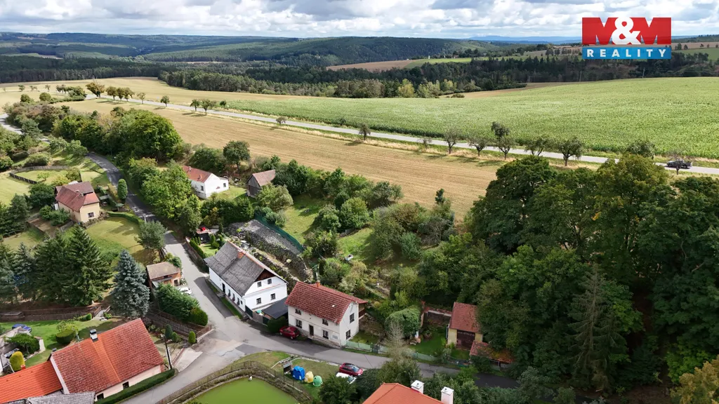 Prodáme chalupu 4+1 s terasou v malebné obci Křečov. Nachází se v krásné krajině Manětínska s čistým ovzduším a zároveň v dojezdové vzdálenosti od Plzně. Disponuje vším potřebným pro pohodlné trávení volného času i bydlení. V přízemí procházíme doleva přes předsíň do kuchyně, koupelny a spižírny nebo obývacího pokoje vpravo. Po schodech pokračujeme do patra s prostornou chodbou, třemi pokoji, WC, předsíňkou a východem na krytou terasu a zahradu. Navíc je tu jeden sklep v domě s přístupem zvenku, druhý samostatně stojící, patrová stodola, venkovní suché WC a dřevník. Na pozemku zbývá dostatek místa pro případnou garáž, parkování je dostupné před domem i v zahradě. Nad domem pokračuje do svahu zahrada s ovocnými stromy, keři a hroznovým vínem. Každý člen rodiny zde najde dostatek soukromí i zábavy, pro pány je příležitost tvořit ve stodole, pro dámy květinové království, pro děti mnoho inspirativních zákoutí doma i na zahradě, návštěvy okouzlíte posezením na terase.