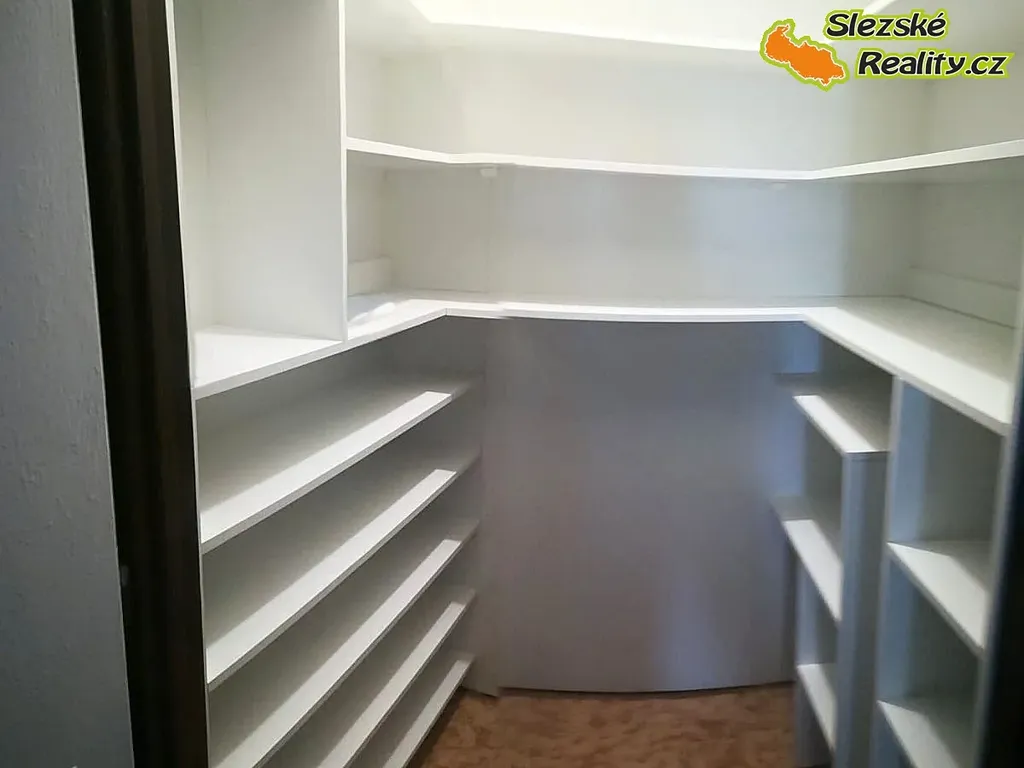 V bytě se nachází i komora s regálem, která poskytne další místo pro věci, které chcete mít po ruce, ale ne nutně na očích.
