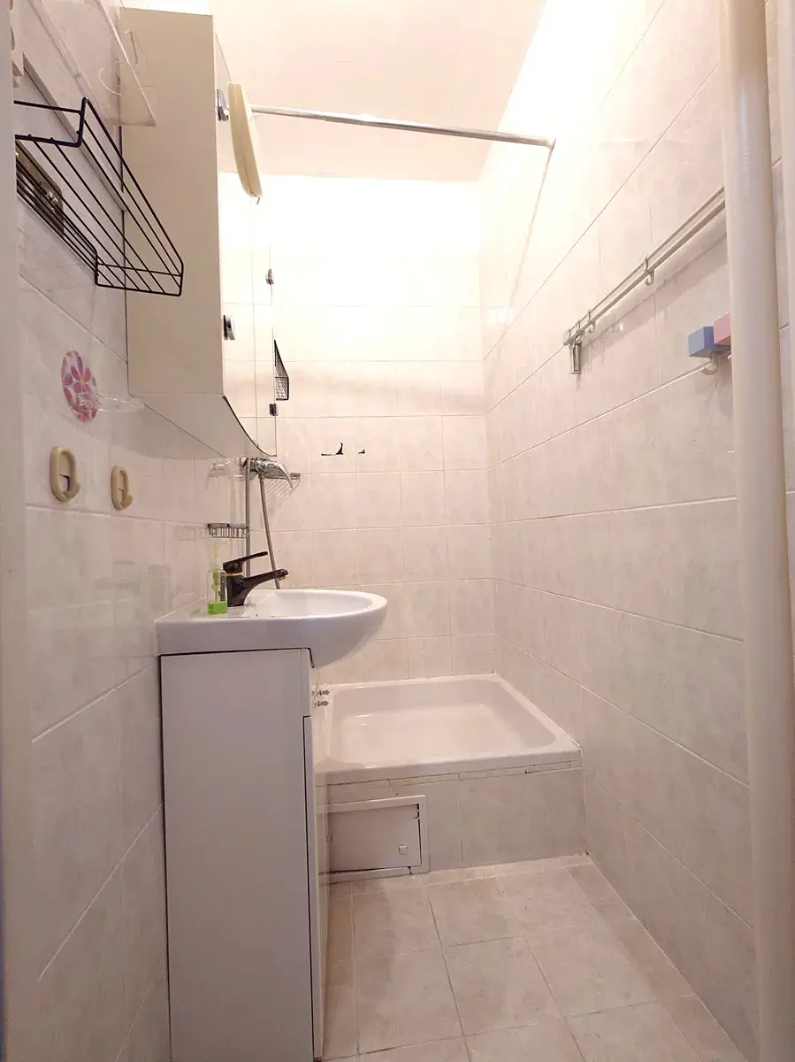 V bytě je zděné jádro, plastová okna, vyštukováno a vymalováno. Na podlaze je koberec-nutná výměna, koupelna + WC dlažba.