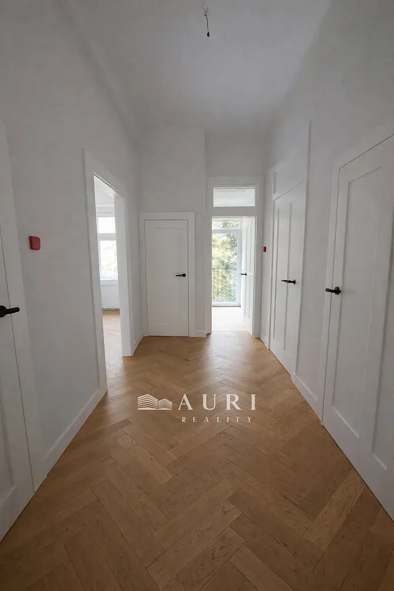 Dispozice bytu zahrnuje prostornou chodbu, dvě komory, samostatnou toaletu, koupelnu, kuchyň a dva pokoje. Součástí je také sklepní kóje. Velkou předností domu je rozlehlý zelený vnitroblok, který nabízí příjemné místo k odpočinku v samotném srdci města.
