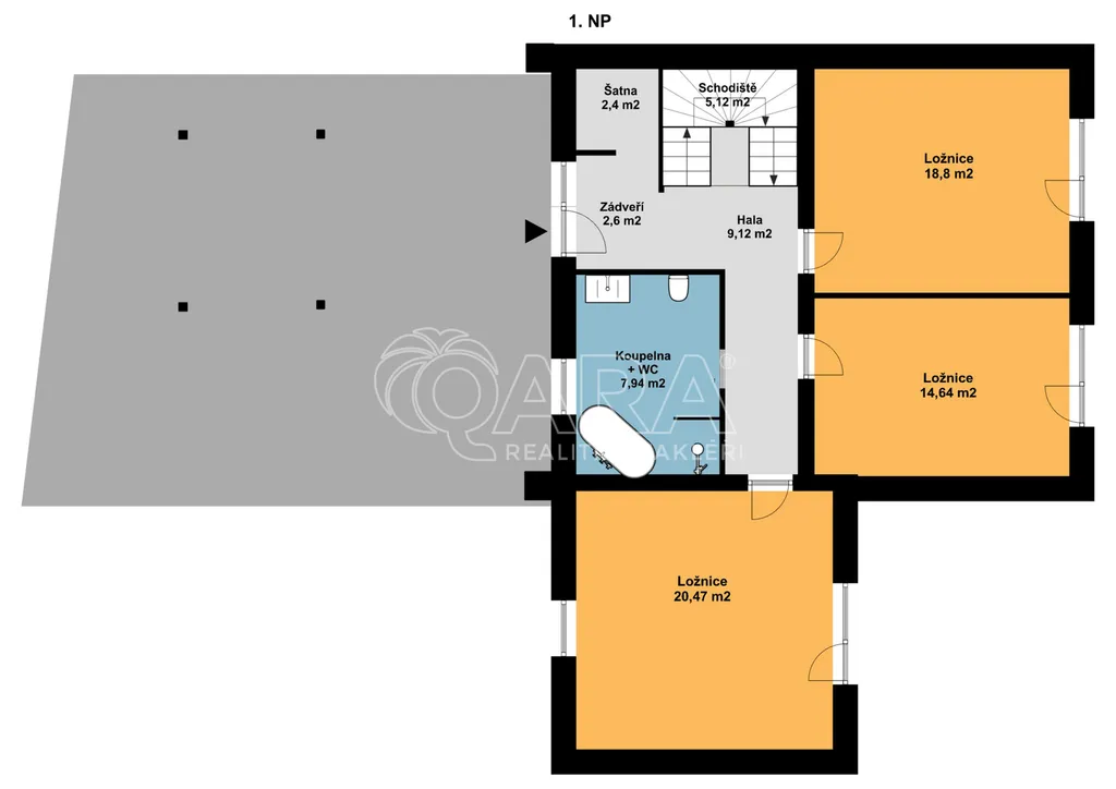 Rozsáhlá terasa navazuje na obývací pokoj a jídelnu a propojuje tak dům se zahradou a bazénem. Zahrada má orientaci na jihovýchod a nabízí krásné výhledy do širokého okolí. Auta lze parkovat na částečně zastřešené zpevněné ploše před domem. Na té se nachází rovněž stavba dílny. Vila byla dokončena v roce 2022 a záruky na stavební část domu jsou až do roku 2027. K nadstandartnímu vybavení patří ocelová a dřevěná eurookna s izolačním trojsklem, předokenní žaluzie, kvalitní dřevěná dubová podlaha, velkoformátové moderní dlažby a luxusní sanita, stropy otevřené do krovu a vestavěné skříně. Dům má energetickou třídu (PENB) B s moderními úspornými technologiemi, které zahrnují podlahové vytápění domu a boiler. Klimatizační jednotky poskytují dodatečné chlazení a topení.