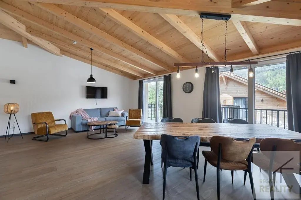 V okolí najdete příjemné cyklostezky, které lákají k rodinným výletům na kole, a v zimě ski bus přímo před domem usnadňuje přístup na svahy. Hned vedle apartmánu je k dispozici restaurace a půjčovna kol, což zvyšuje komfort bydlení.