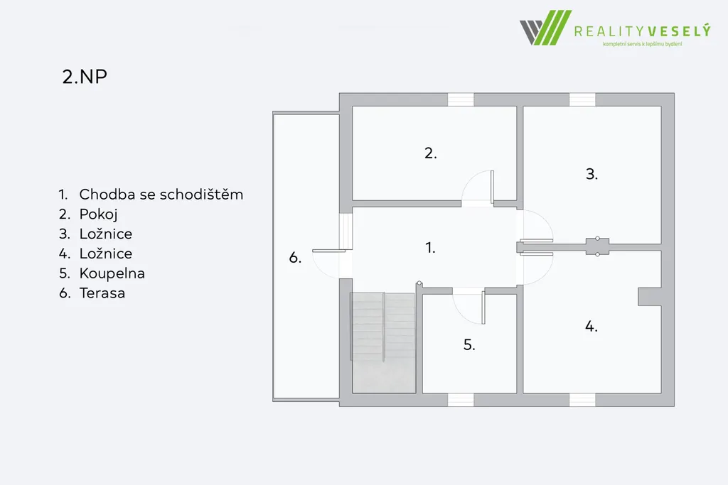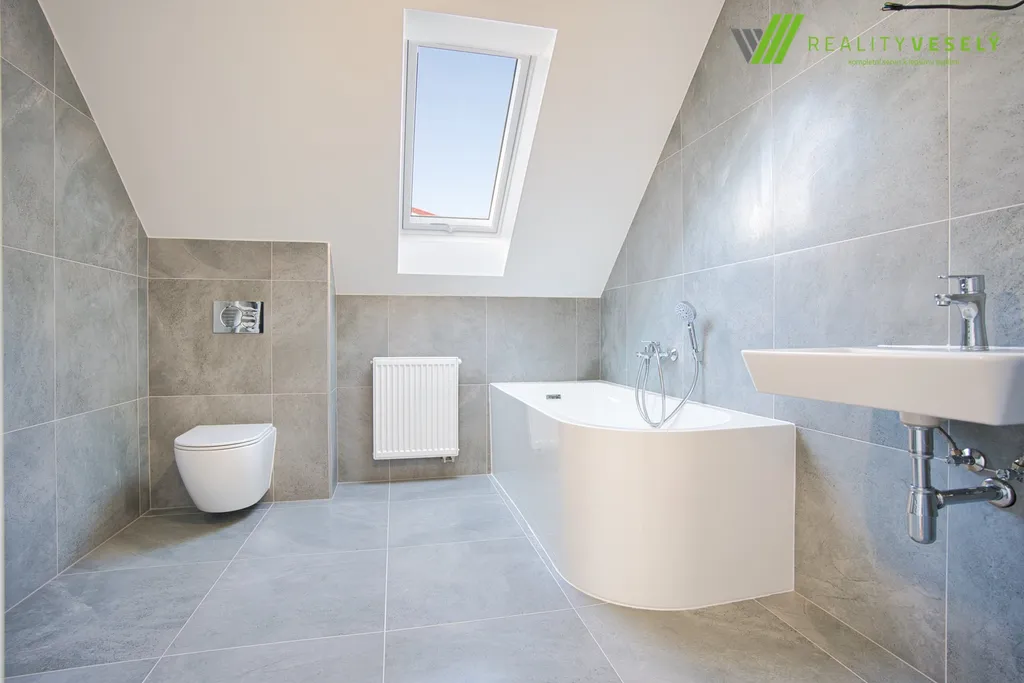 V patře domu jsou k dispozici tři samostatné neprůchozí pokoje, které mohou sloužit jako dětské pokoje, pracovna nebo pokoj pro hosty. Součástí patra je také druhá koupelna s vanou, která potěší především milovníky relaxačních koupelí nebo rodiny s malými dětmi, pro které je vana velmi praktickým řešením. Samozřejmostí je také toaleta.