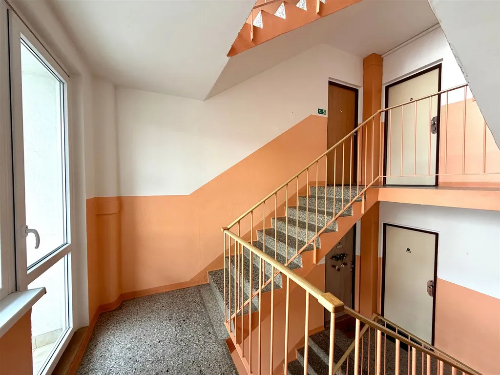 Byt je k dispozici k nastěhování od 1.5.2026 a pronajímá se včetně zařízení (pračka, lednice, jídelní stůl + 4 židle, botník, skříň a praktická vestavěná skříň v pokoji). Dále je možné využívat balkon v mezipatře.