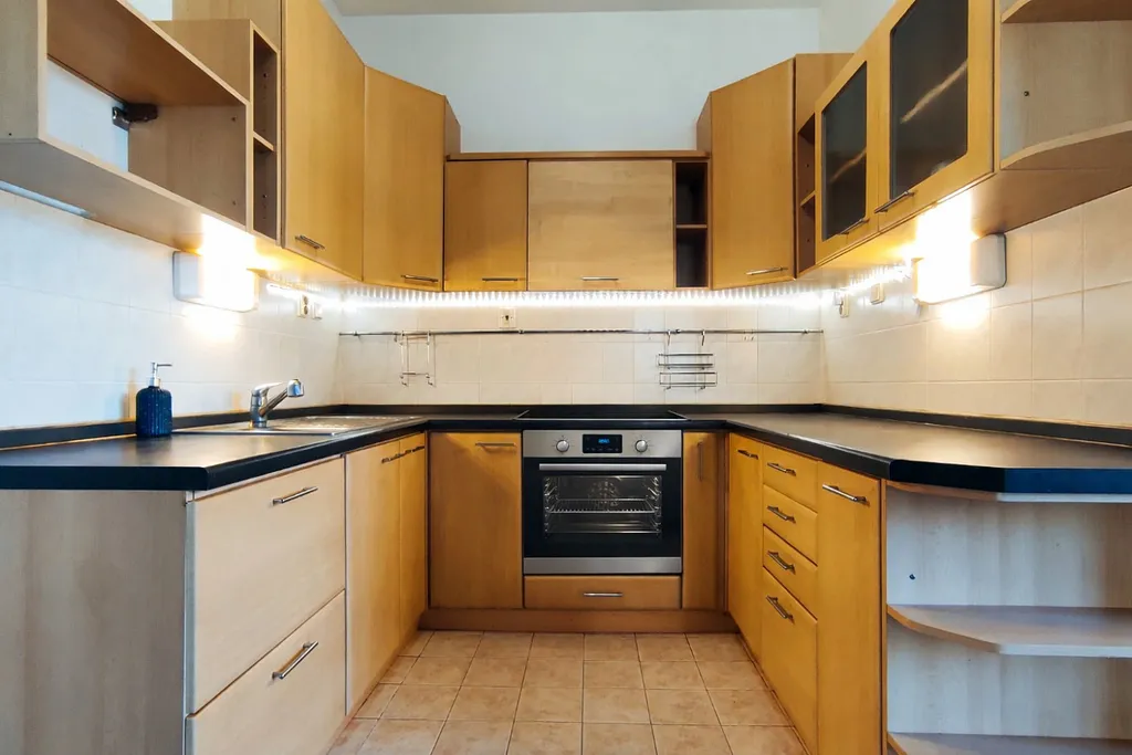 Byt je vybaven kuchyňskou linku doplněnou o myčku nádobí. Na kuchyňskou linku navazuje obytný prostor pro umístění sedací soupravy nebo například jídelního stolu. Chodba disponuje velkým množstvím úložného prostoru a propojuje veškeré místnosti. Koupelna s rohovou vanou nabízí hodně prostoru pro umístění pračky i sušičky prádla. Na chodbu také navazuje oddělená toaleta a pokoj s vestavnými skříněmi. Vytápění a ohřev vody je zajišťováno prostřednictvím plynového kondenzačního kotle přímo v budově, který v kombinaci se zateplením budovy (energetická náročnost budovy C) zajišťuje nízké provozní náklady. Spotřebu el. energie si nájemce převádí na sebe, tudíž je spotřeba a následné vyúčtování maximálně transparentní.