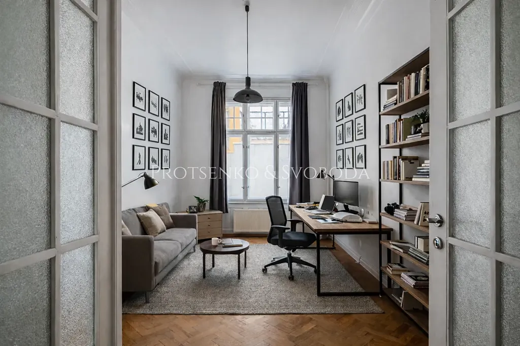 Tento byt prošel kompletní a nákladnou rekonstrukcí. Vše je zcela nové – od moderní kuchyňské linky se spotřebiči až po precizně obroušené původní parkety, které interiéru dodávají noblesu a charakter.