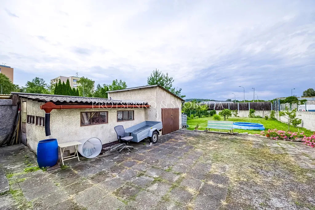 Nemovitost stojí na pozemku o velikosti 686 m² a je kompletně podsklepená, což umožňuje další využití skladovacích prostor. Stav je před rekonstrukcí, takže si interiéry můžete upravit přesně podle potřeb vašeho podnikání.