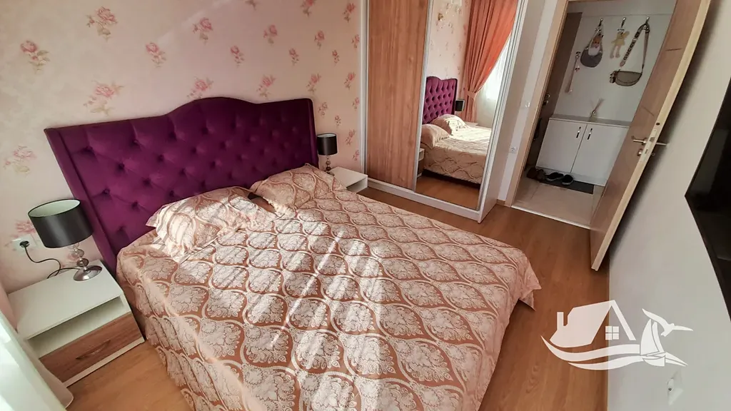 Byt je navržen s důrazem na funkčnost i útulnost. Vstupní chodba vás přivede do prostorného obývacího pokoje s kuchyňským koutem, který se stává přirozeným centrem dění. Dvě ložnice poskytují dostatek klidu a soukromí, koupelna s toaletou je moderní a praktická. Balkón nabízí výhled na bazén a upravený areál, který v létě připomíná oázu uprostřed přímořského města.