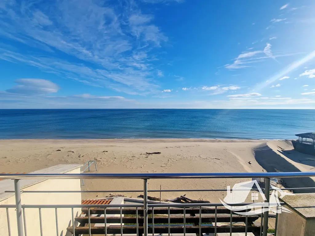 Apartmán se nachází v pátém, posledním patře moderního rezidenčního komplexu s výtahem a nabízí pocit soukromí, prostoru a otevřenosti. Díky umístění přímo na pláži se z každé místnosti i obou teras otevírá nádherná, ničím nerušená panoramatická vyhlídka na Černé moře. Interiér působí svěže, elegantně a přirozeně propojuje pohodlí s atmosférou přímořského bydlení.