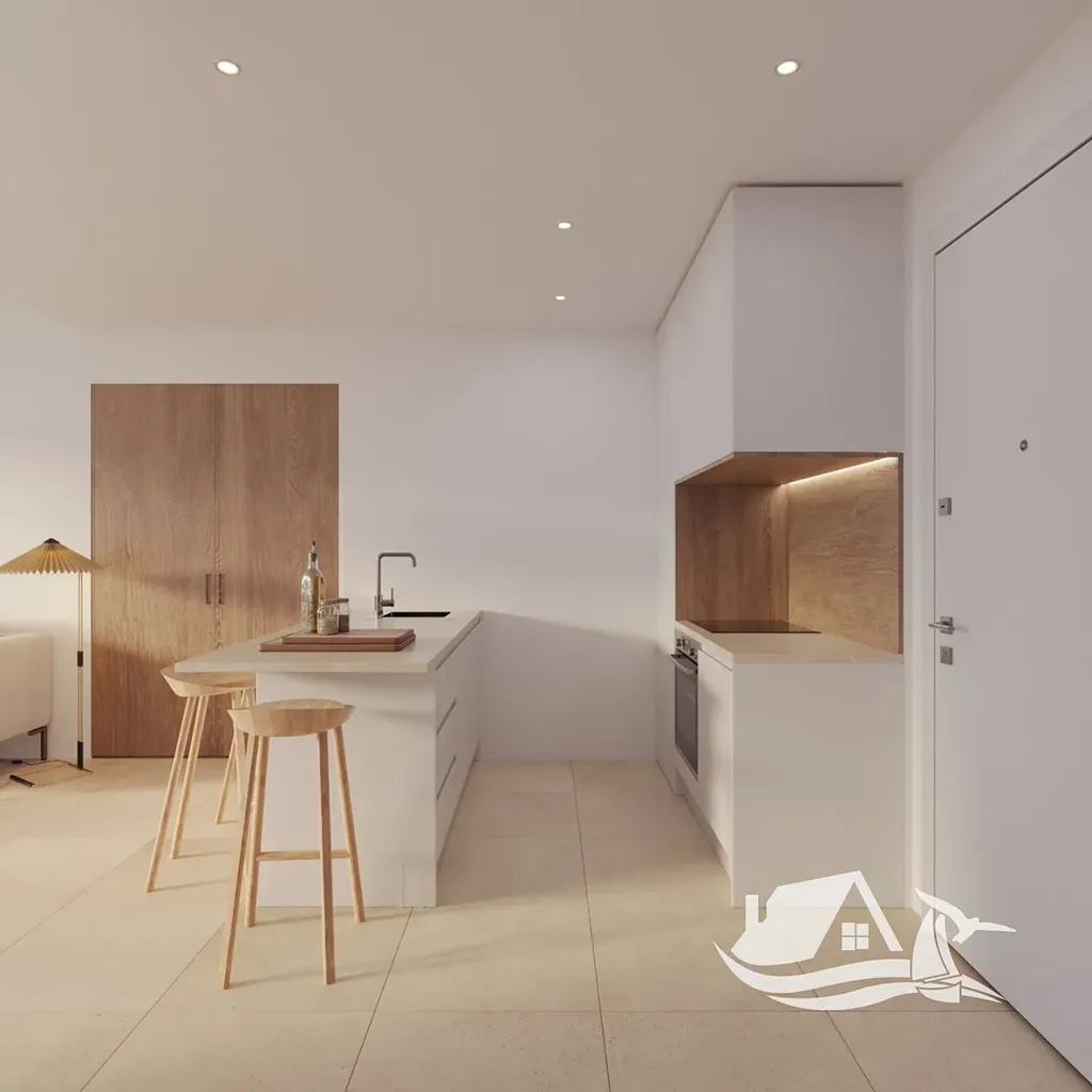 Nabízený apartmán disponuje dispozicí 2+kk s celkovou zastavěnou plochou 105,68 m² a užitnou plochou 93,15 m². Dominantou bytu je velkorysý obývací prostor s kuchyní o velikosti téměř 36 m², který plynule navazuje na krytou terasu o rozloze 25,07 m². Terasa přirozeně rozšiřuje obytný prostor a vytváří ideální místo pro ranní kávu, večerní posezení i klidné chvíle pod středomořským nebem.