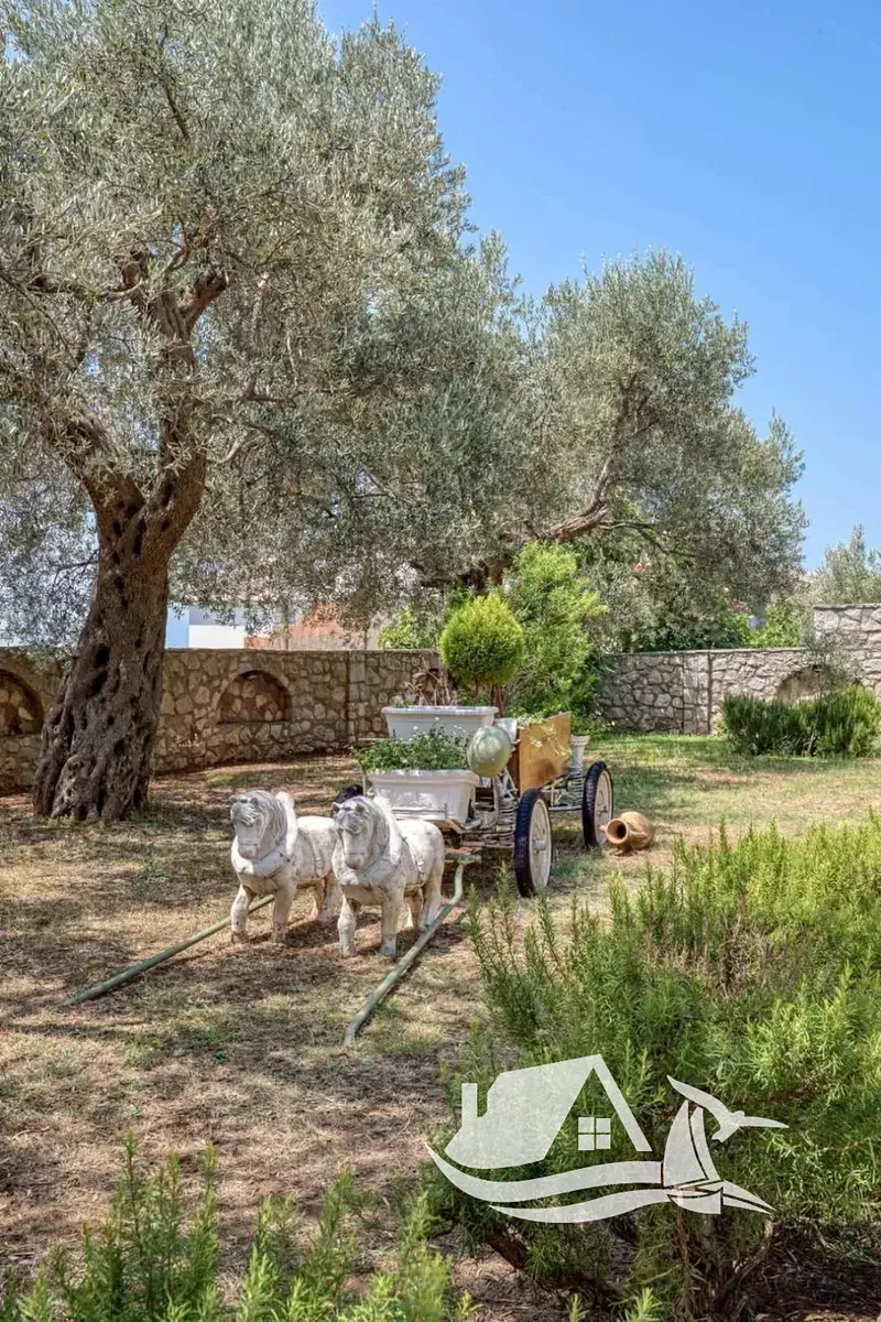 Exteriér je pečlivě upravený a osázený množstvím olivovníků a další středomořské zeleně, která vytváří pocit soukromého ráje. Součástí je krásný bazén s relaxační zónou pro posezení a odpočinek.
