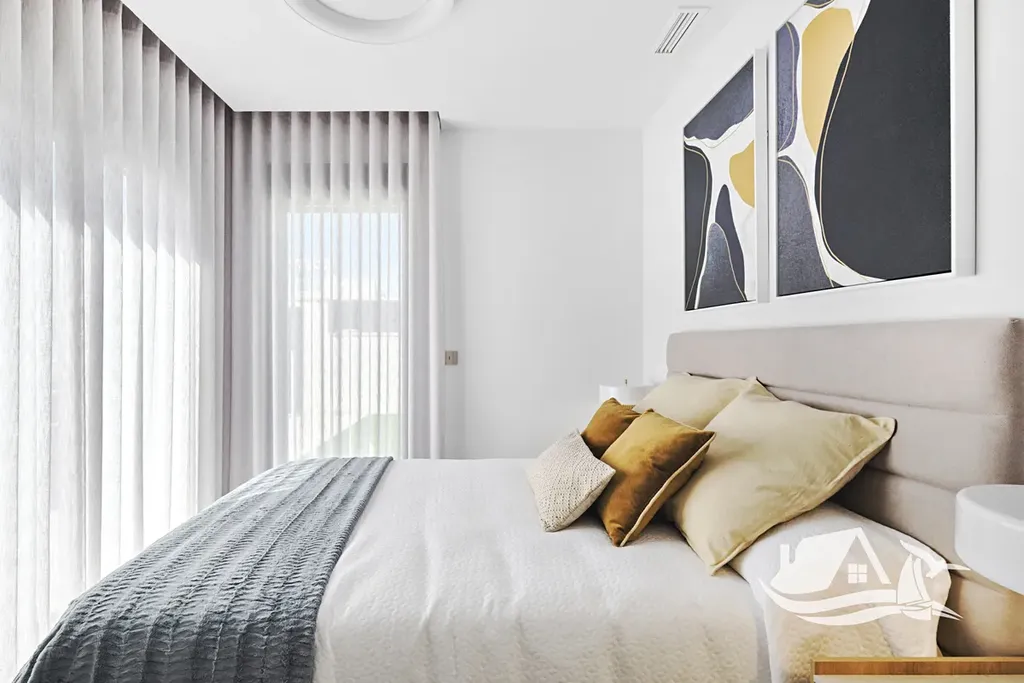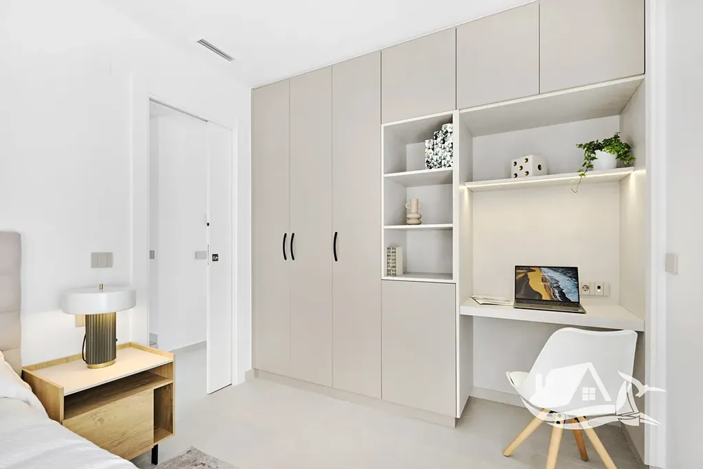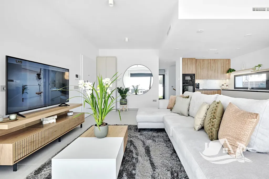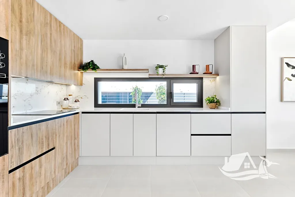 Interiéry jsou promyšlené tak, aby sloužily rodinám i párům, nabízejí tři ložnice a dvě koupelny, keramické podlahy pro snadnou údržbu a příjemný vzhled, plně vybavenou kuchyni a nábytek připravený k nastěhování, takže si nové bydlení můžete užít hned. Komfort zvyšují klimatizace a před instalace pro další chladicí jednotky, elektrické rolety a vestavěné skříně, vše v moderním a praktickém provedení.