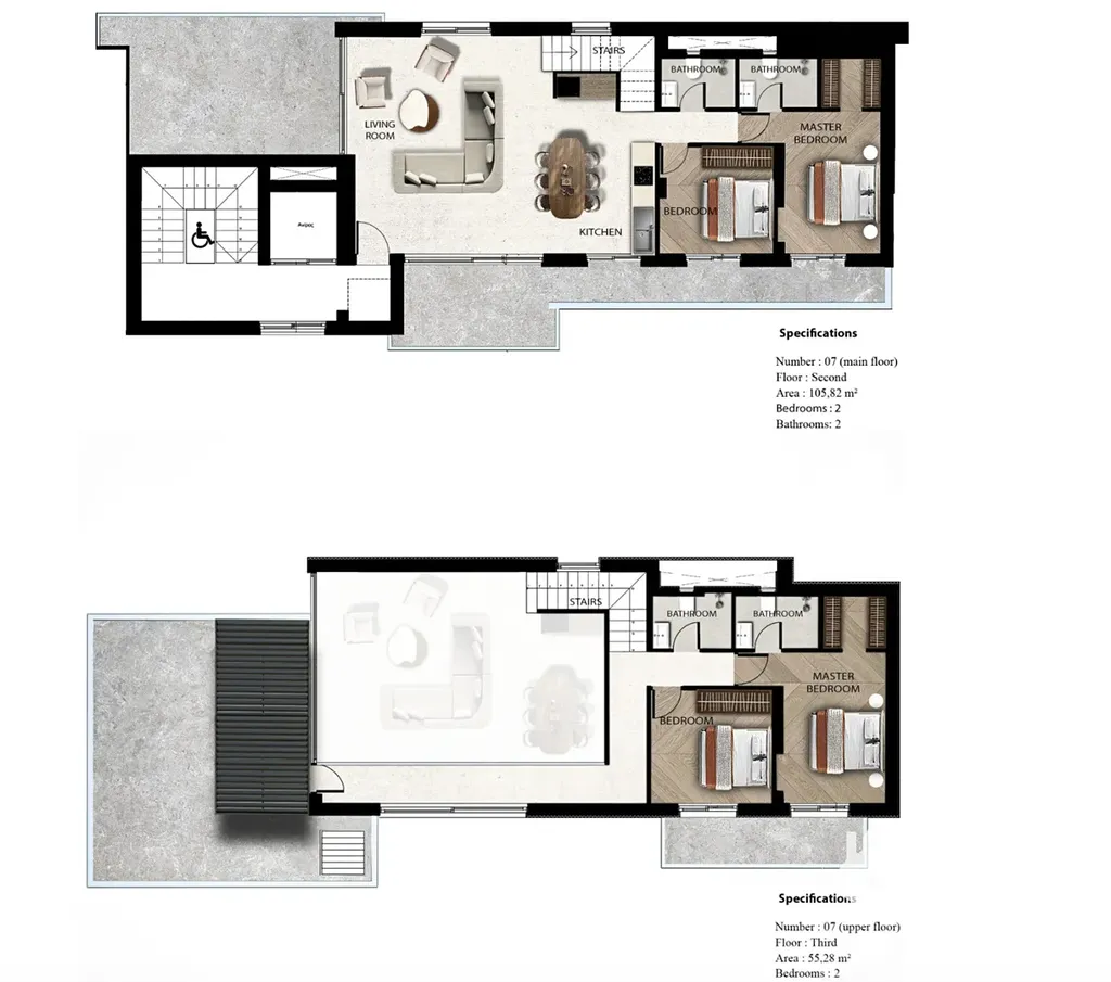 Nabízíme exkluzivní mezonet 5+kk (4 koupelny) o celkové ploše 161.1 m², nacházející se v rezidenčním projektu, situovaném v prestižní čtvrti Halepa v Chanii. Tento moderní komplex 15 luxusních apartmánů je navržen tak, aby z každé jednotky nabízel panoramatický výhled na moře, záliv Chania a dechberoucí západy slunce.