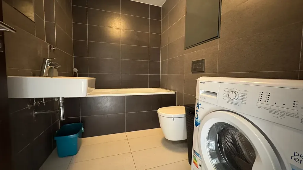 Byt se nachází v udržovaném domě s výtahem. Dispozici tvoří hlavní obytný prostor s kuchyňským koutem, předsíň a koupelna s vanou, toaletou a pračkou. Součástí bytu je také velká lodžie orientovaná do klidného vnitrobloku se zelení.