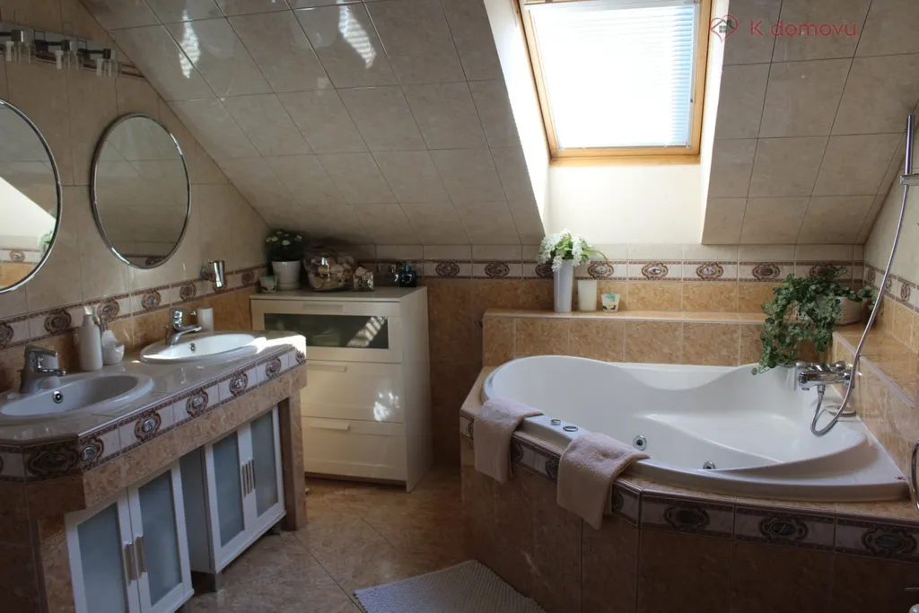 V přízemí se dále nachází vstupní chodba a praktická koupelna s místem pro pračku a sušičku.