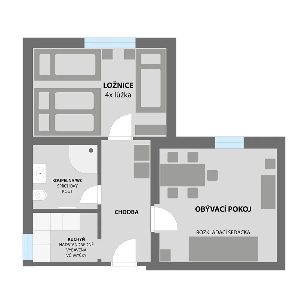 • apartmán 2+kk, 54 m²