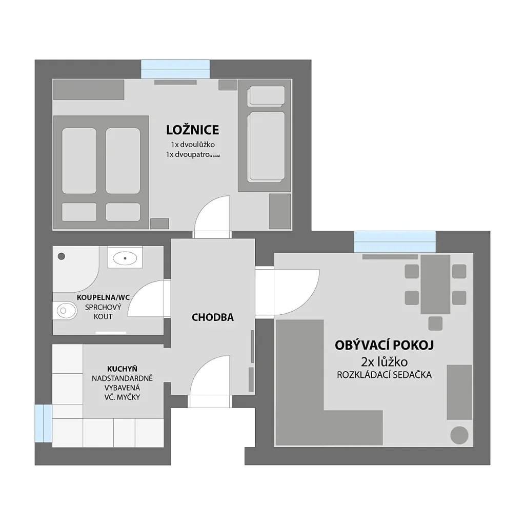 ✔ Kapacita až 5 osob – ideální pro rodiny i skupiny přátel