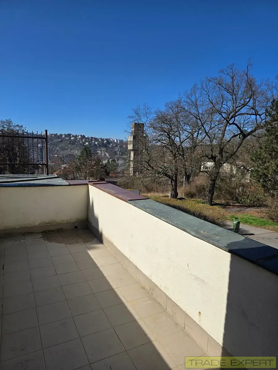 Apartmán je součástí luxusní vily postavené ve svahu, díky čemuž nabízí krásný výhled na Barrandovský most a Barrandovskou kaskádu. Byt je ideální pro nájemce, kteří hledají klidné, elegantní a plně servisované bydlení v Praze.