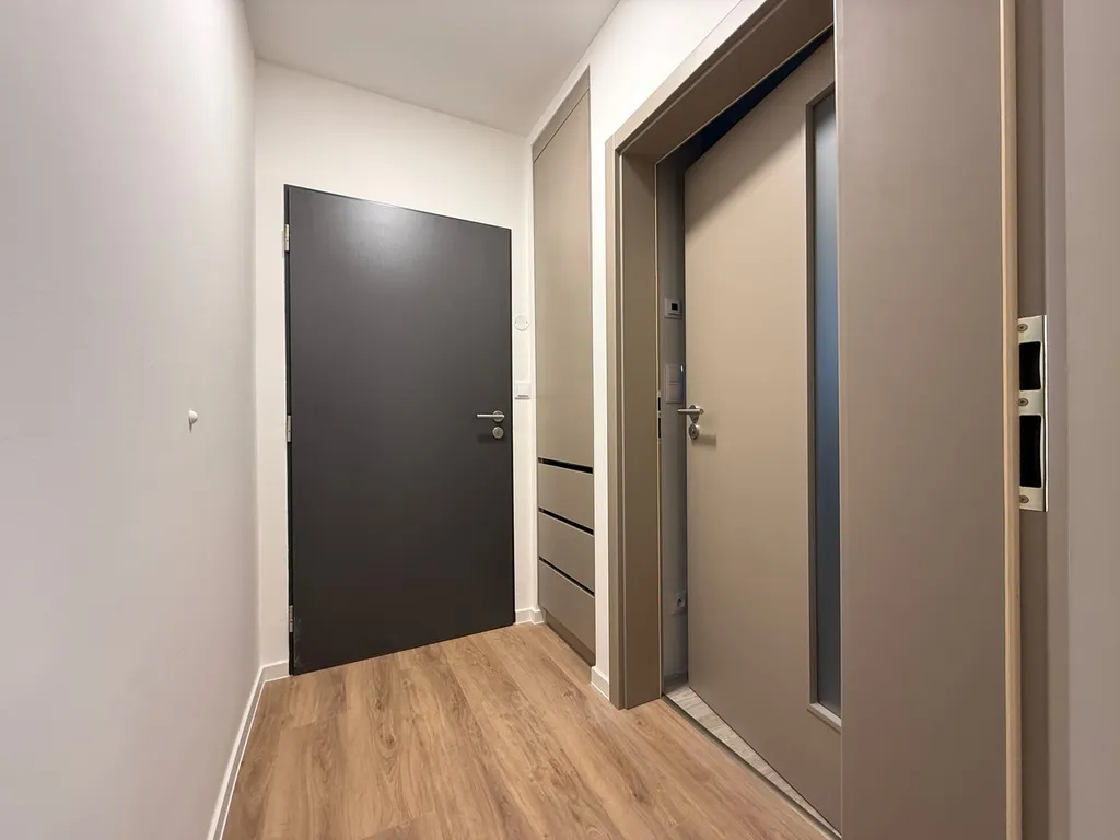 Prostor je dispozičně řešen jako prostorné 1+kk s odděleným skladovacím prostorem (šatnou). Je vybaven novou kuchyňskou linkou, koupelnou se sprchovým koutem, závěsným WC a menším skladem.