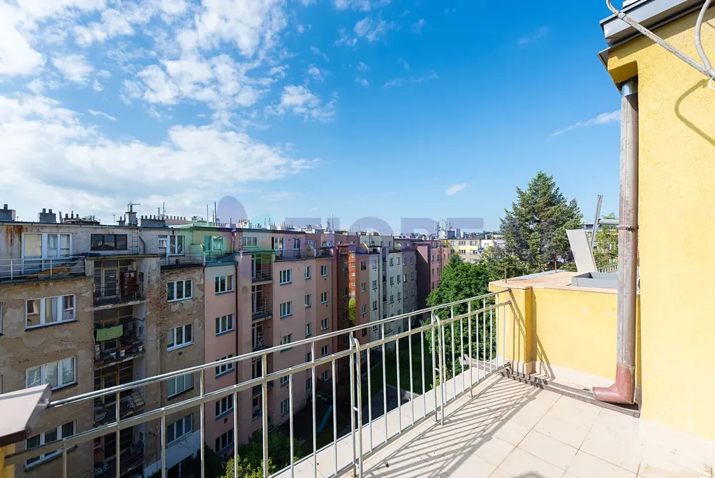 V exkluzivní zastoupení Vám zprostředkujeme pronájem moderního, hezkého, kompletně zrekonstruovaného bytu o velikosti 1+kk/T, ploše 24m² a terase 6m², ve čtvrtém patře cihlového domu bez výtahu. Byt je částečně zařízený novou moderní kuchyňskou linkou s el. sklokeramickou varnou deskou a el. troubou.
