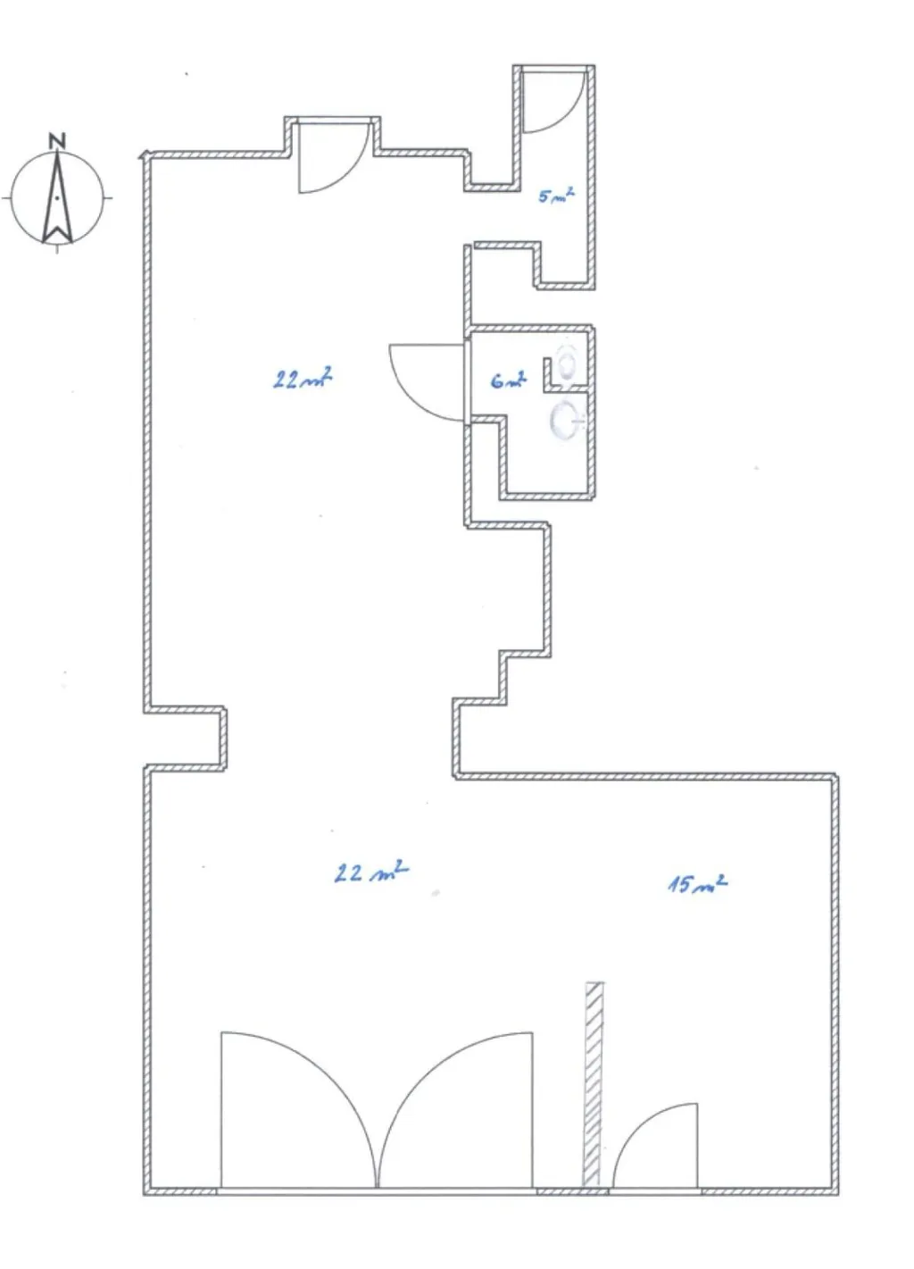 Dispozičně lze prostory využít následovně: vstupní část (např. jako čekárnu) a dvě navazující průchozí místnosti vhodné jako kanceláře, jednací místnosti, studio nebo zázemí firmy. Součástí jednotky je také umyvadlo přímo na provozovně, sociální zázemí a skladový prostor. Uvedené rozměry jsou orientační.