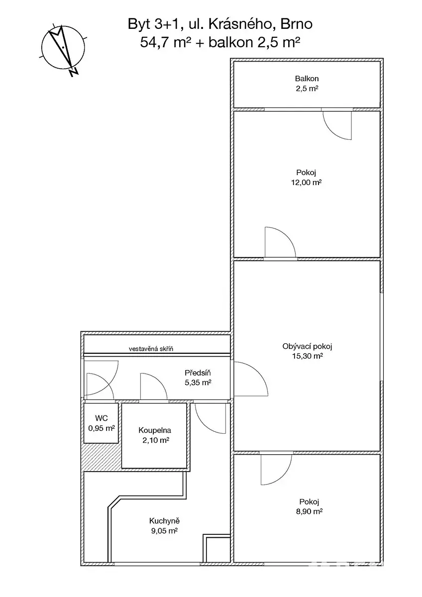 Prodej bytu 3+1, Brno, Krásného, 55 m2